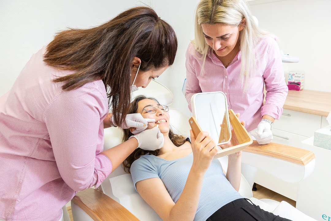 Frau Doktor und zwei Assistentinnen blasen alten Riemen