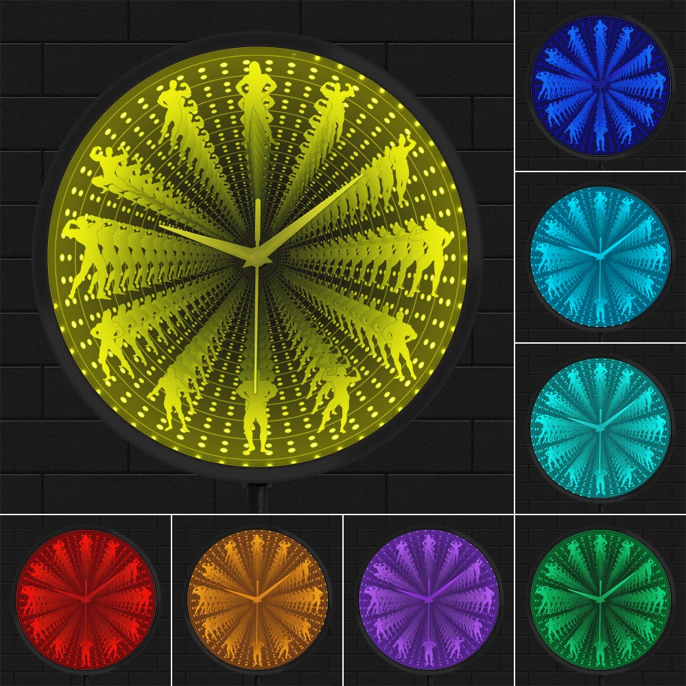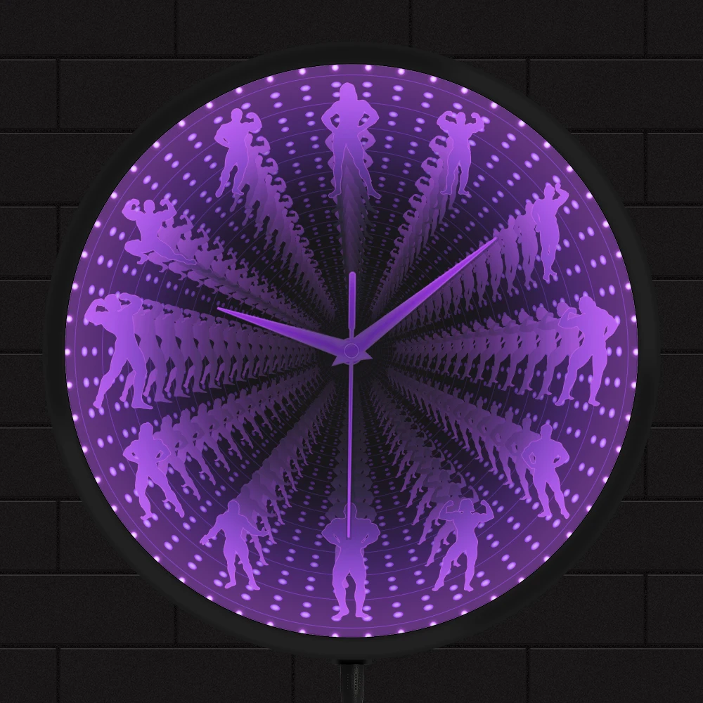 Bodybuilder Modern Design LED Lighting Wall Clock For GYM Training Room Workout Bodybuilding Interstellar Infinity Mirror Clock - Купить с бесплатной доставкой