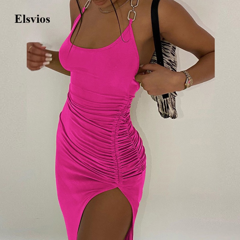NewAsia Ruched Satin Summer Dress Drawstring Spaghetti Straps Cowl Neck Backless Long Dresses for Women Party Sexy Vestidos 2022