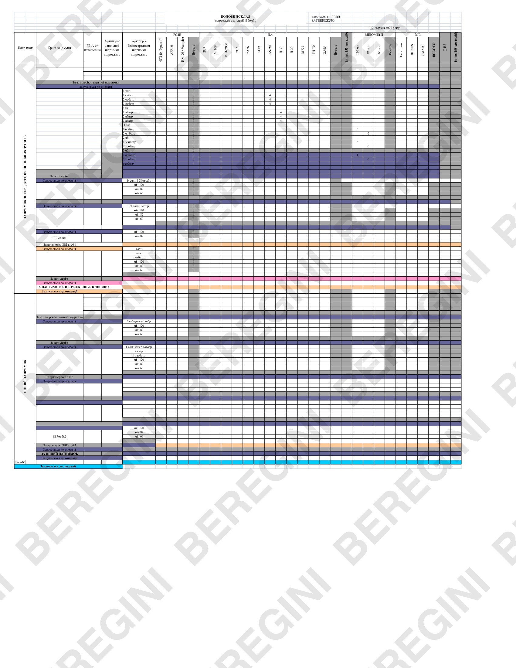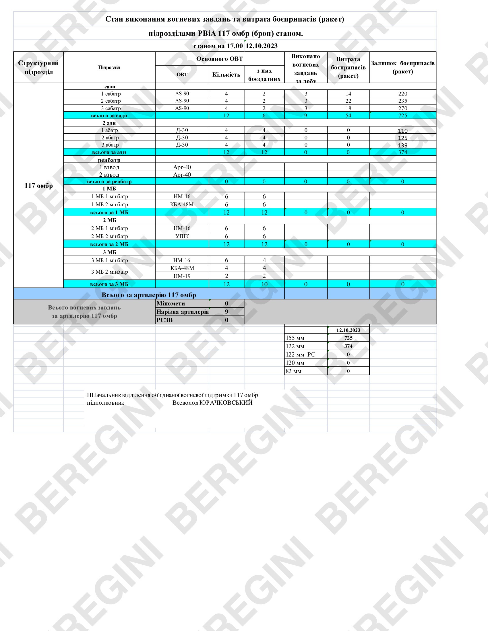 Боевой состав 117 омбр