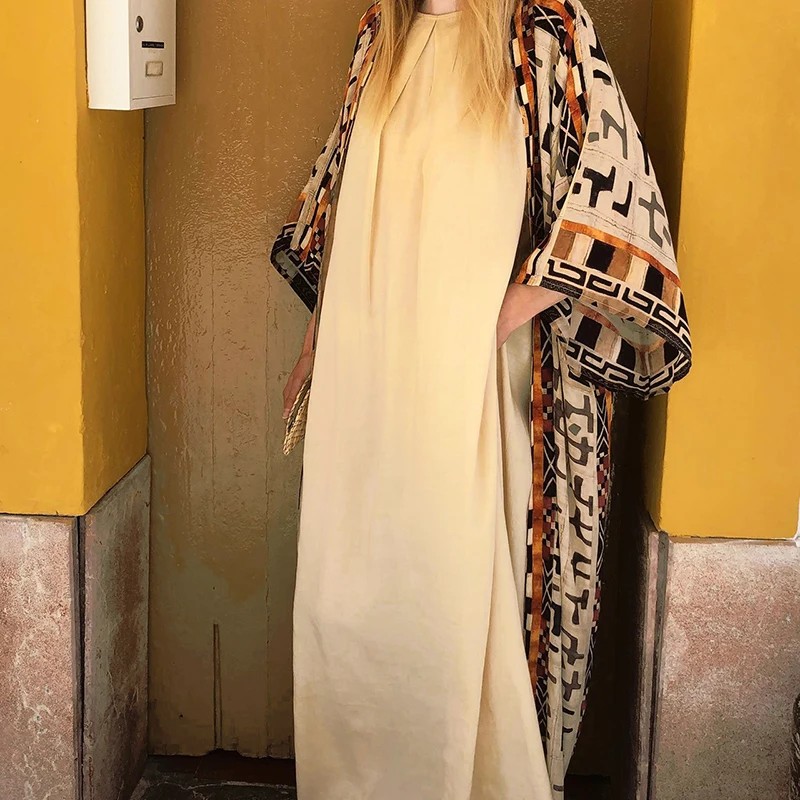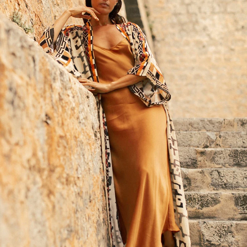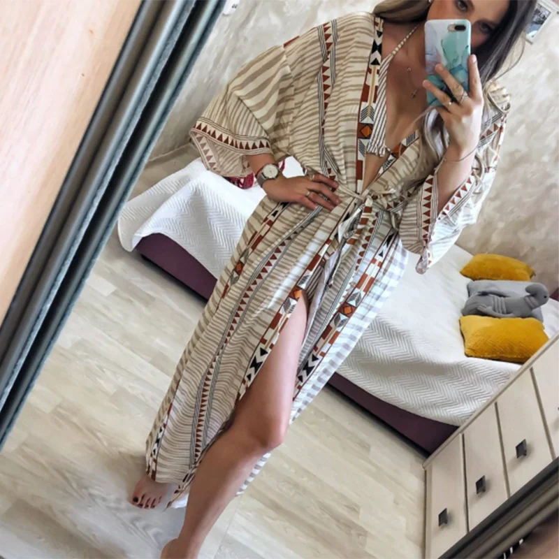 «Bohemian Long Kimono Dress Boho Style Geometric Patterns Beach Robe Bohowrap Duster Jacket Beach Dressing for Women Loungewear» по лучшей цене на рынке! Всего за 21$ (1995рублей)