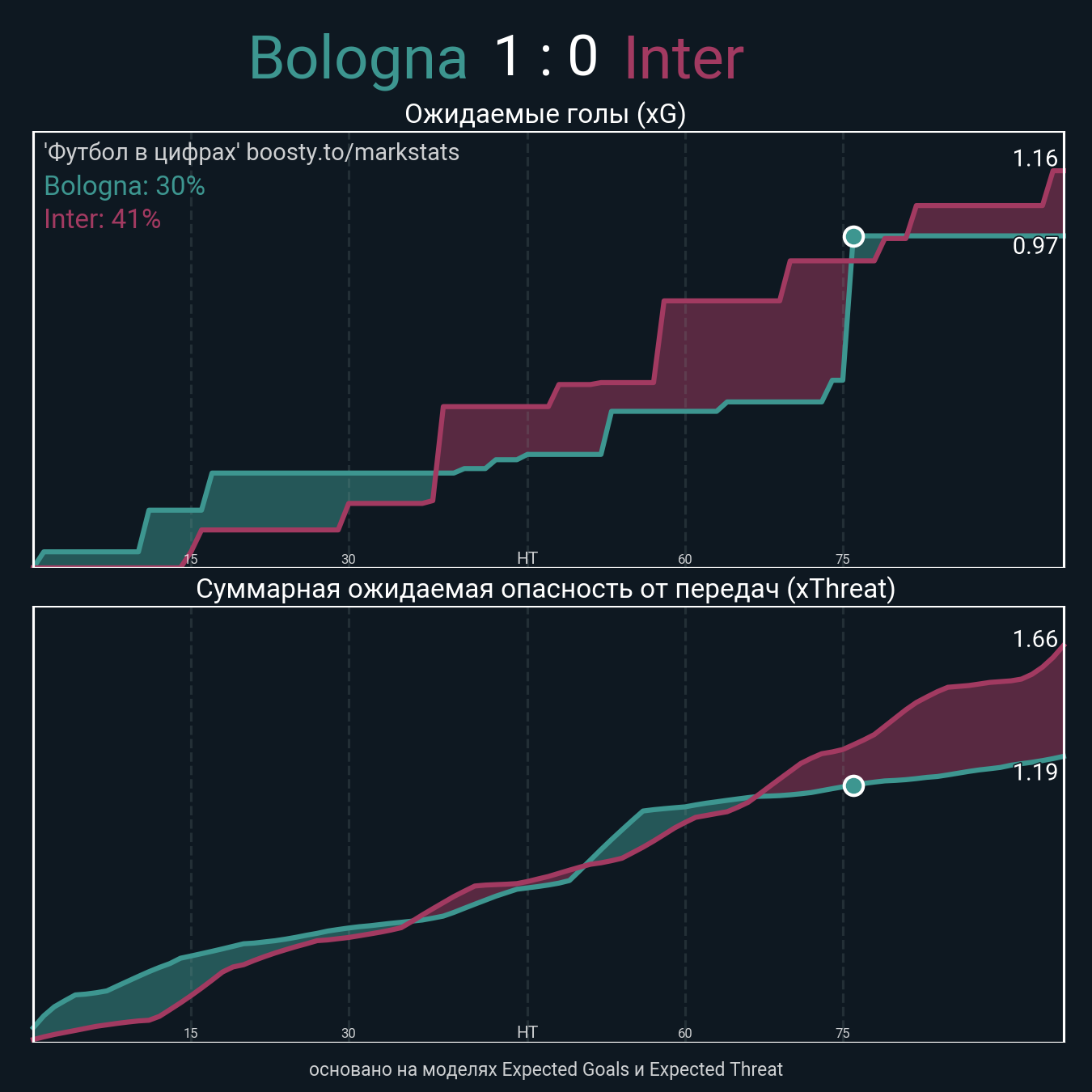 Ожидаемые голы (NPxG): 0.97 - 1.16