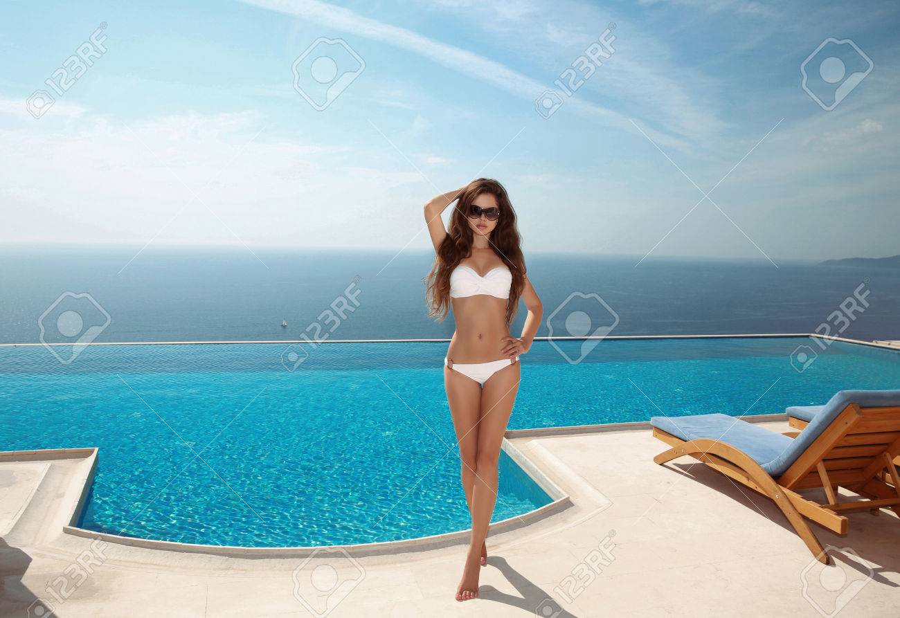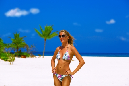 Bonne avec un beau bikini bleu
