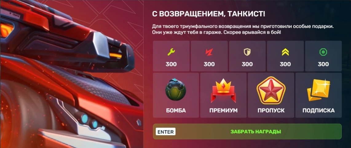 Бонус код за возвращение в игру
