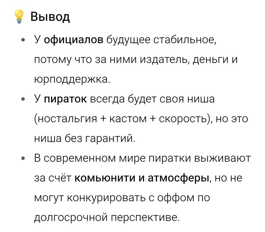 Сейчас у всего сообщества один общий враг — забвение. И это враг, которого нельзя победить в одиночку и которого нельзя победить, продолжая внутреннюю резню. В этой борьбе каждый ушедший игрок — это проигранное сражение, независимо от того, с фришки он был или с оффа.