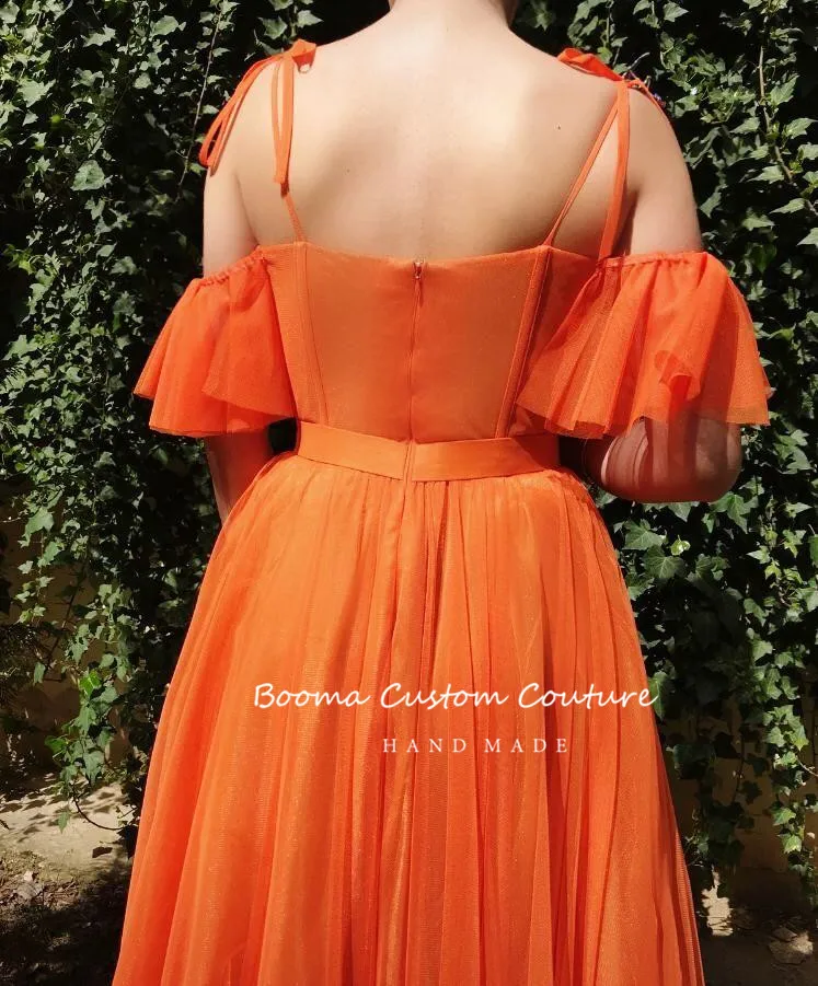 "Booma Orange Tulle A-Line Maxi Prom Dresses Spaghetti Straps Off the Shoulder Butterfly Long Evening Gowns Formal Party Dresses" * Buy Now Just For 88$