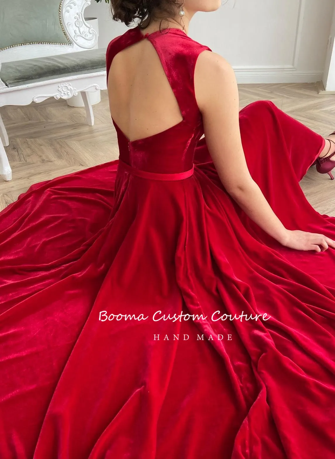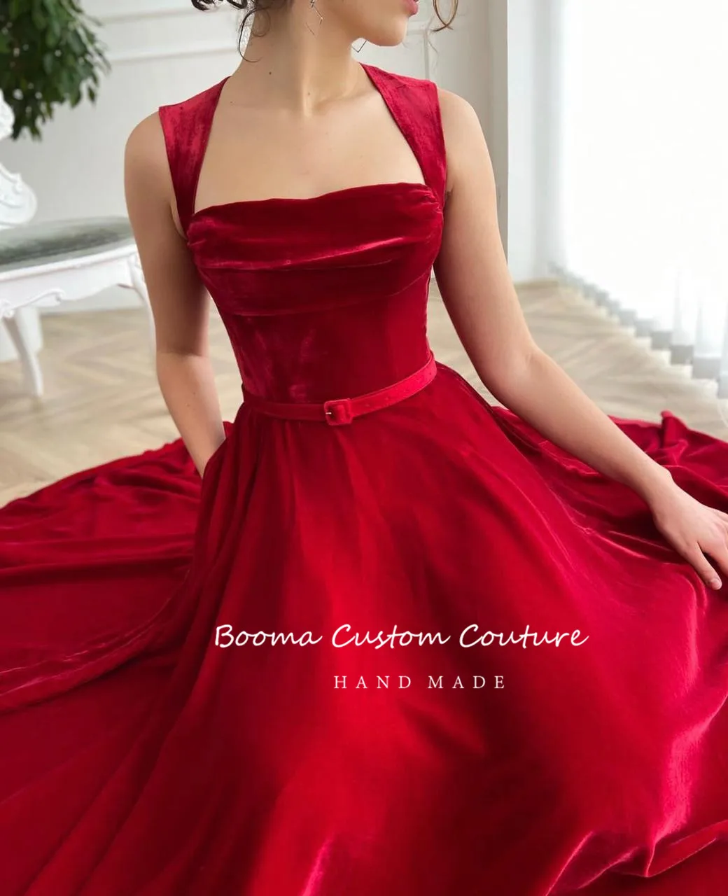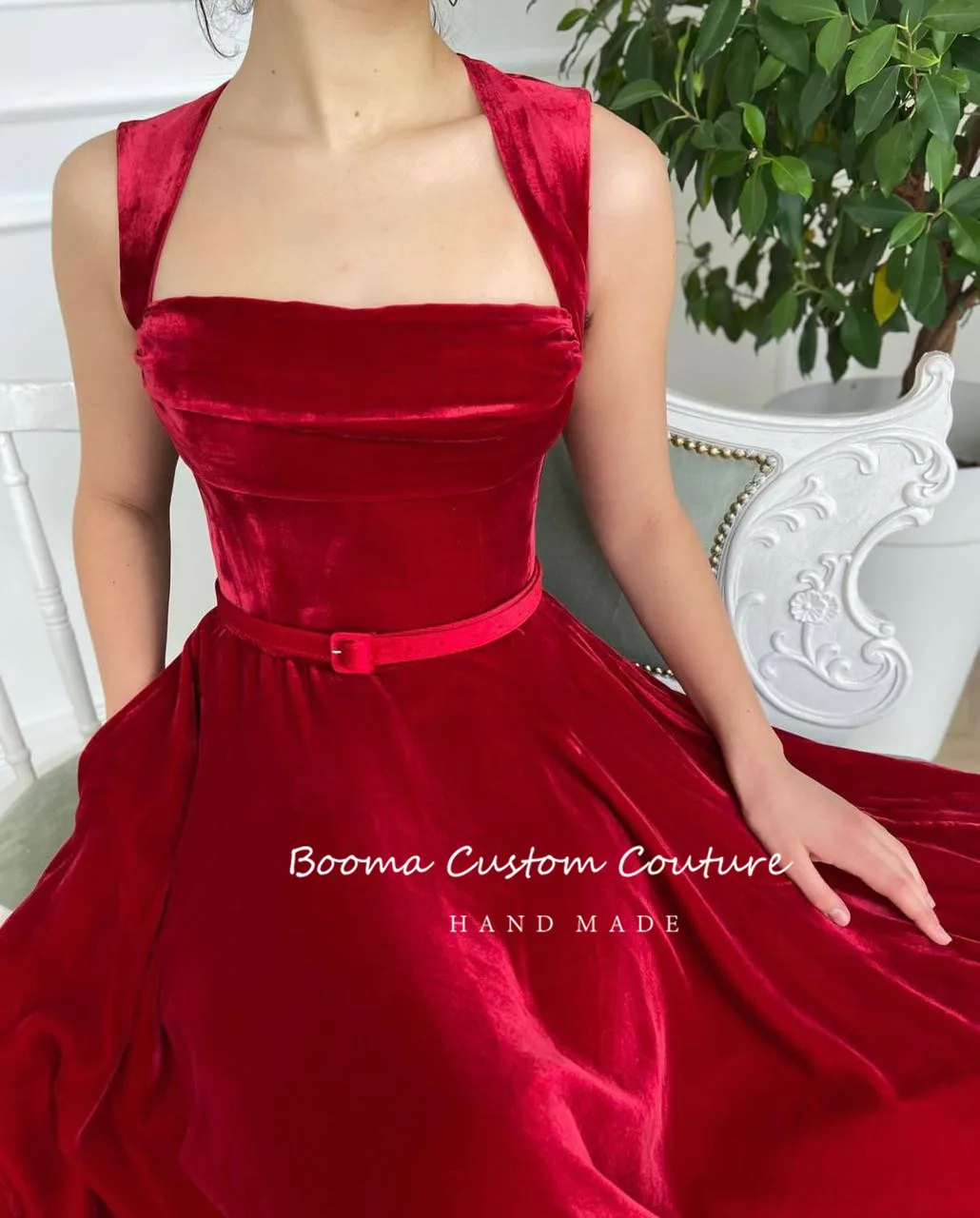 "Booma Simple Red Velvet Prom Dresses Queen Anne Tea-Length Velour Wedding Party Dresses Open Back A-Line Formal Evening Gowns" * Buy Now Just For 77$