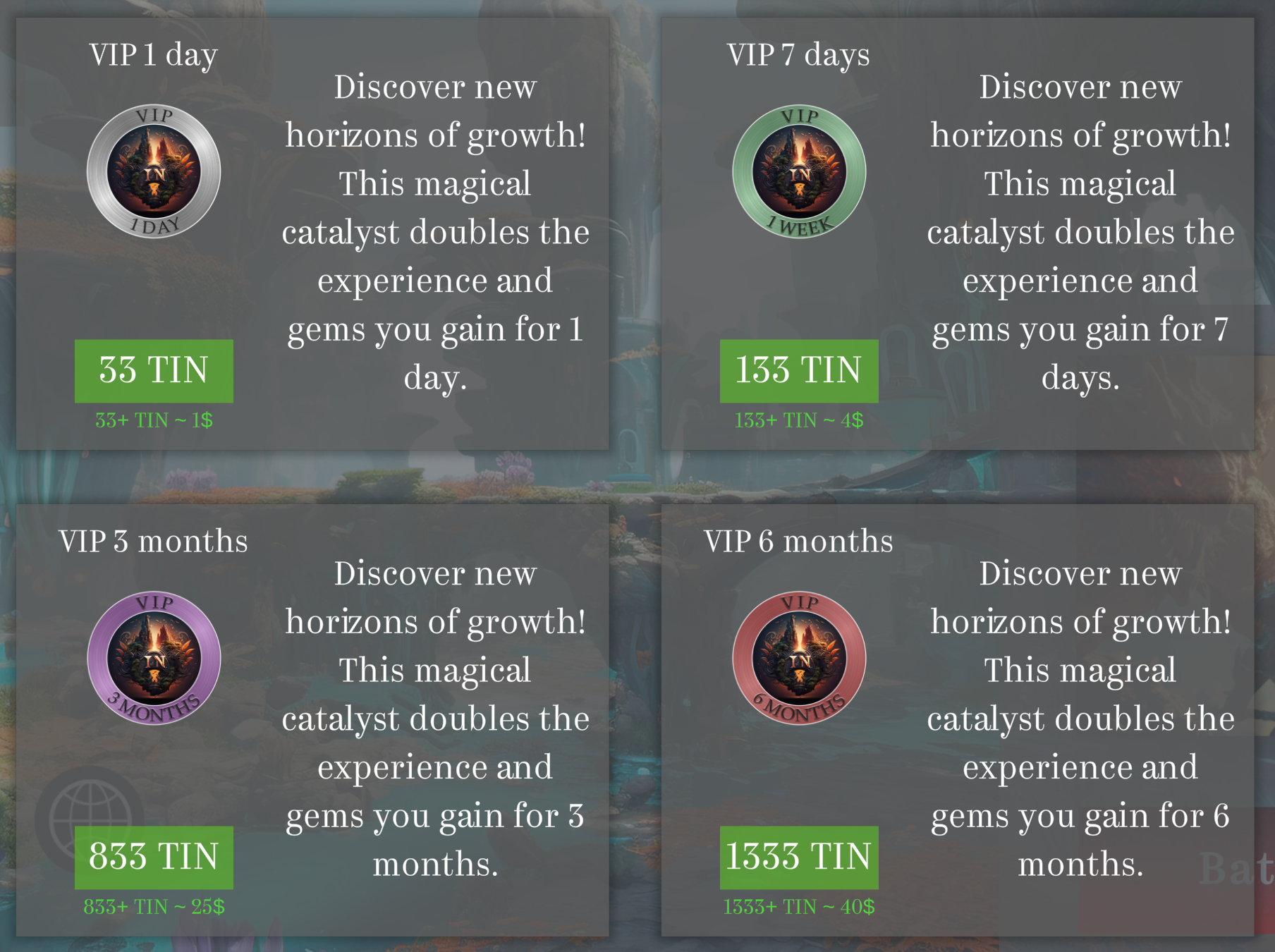 2. Donate gems and $TINs to construct buildings: "transformation" and "stock". 1000 gems of any color = 1 SP, 1 $TIN = 1 SP