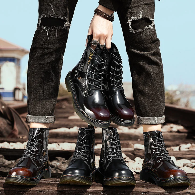 Men Boots Mens Military Combat Boots Men Patent Leather Army Hunting Trekking Camping Mountaineering Winter Martin Boots CB 11 p 09 27
