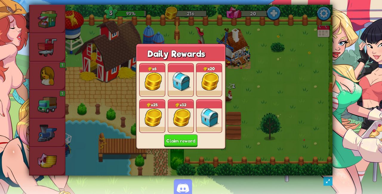 When playing Booty Farm, you will meet Mindy, a hot girl with fiery red hair. She will be your assistant in farm work. She tells you that the girls here are very lonely. Most adult men have moved to the city. There is a factory that is quite far from the town, and the men in this town all work there. Mindy convinces you to stay behind to help the girls in this town. You realize that the girls here are very beautiful and seductive. From now on, your life has changed. You will focus on developing your farm while flirting and dating hot girls in town.