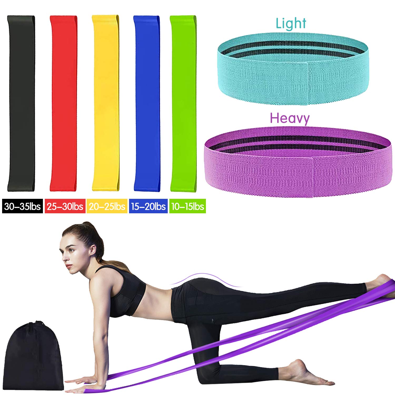 These loops come in three resistance levels (light, medium, and heavy), so you never stop making progress with your workouts . They're perfect for sculpting a firm, round booty, shaping your legs and thighs, tightening and flattening your core, and toning your arms and shoulders . YELLOW = Light Resistance GREEN = Medium Resistance