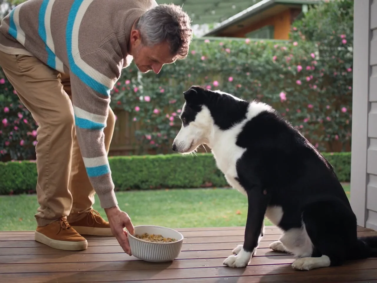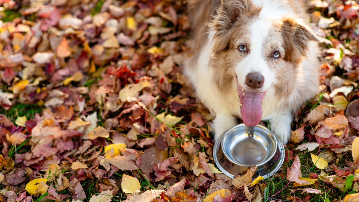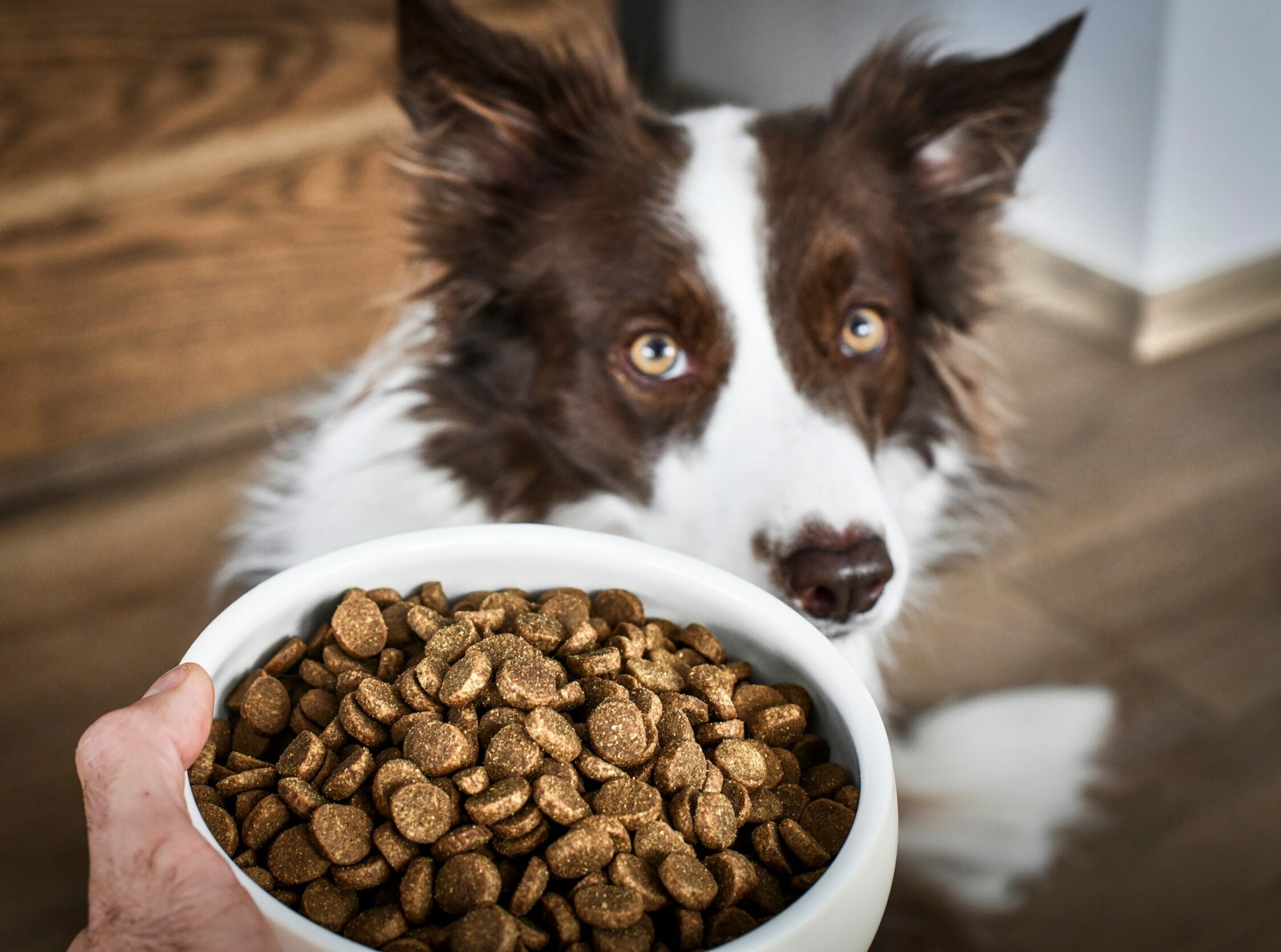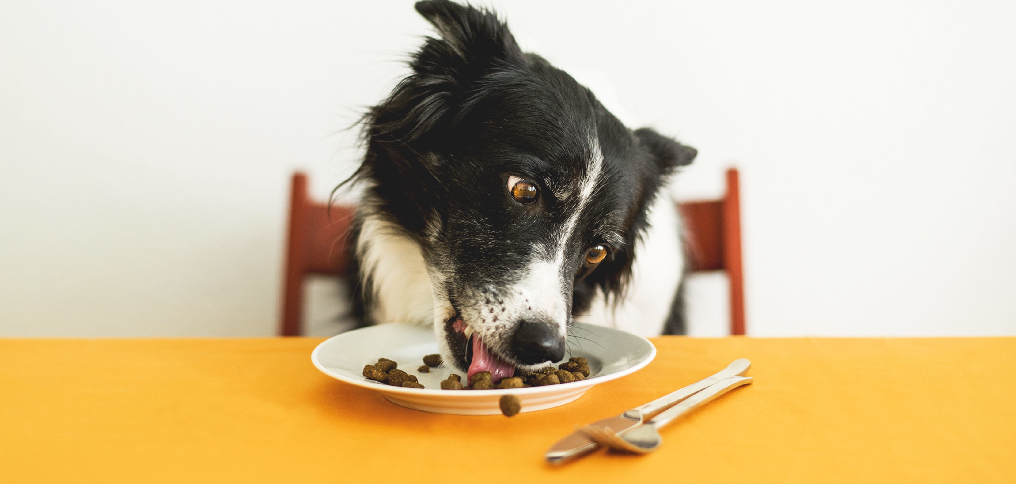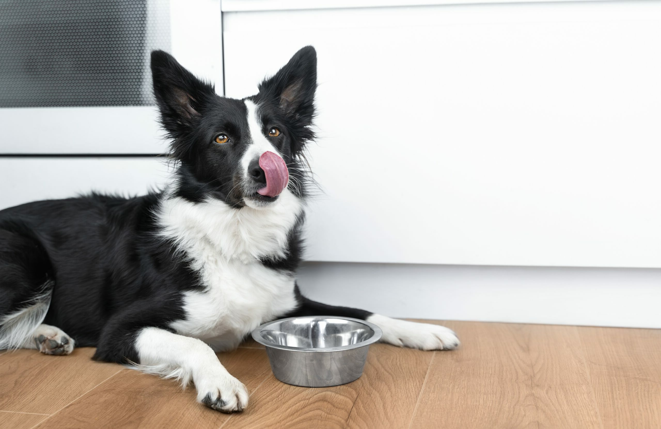 Бордер колли ест