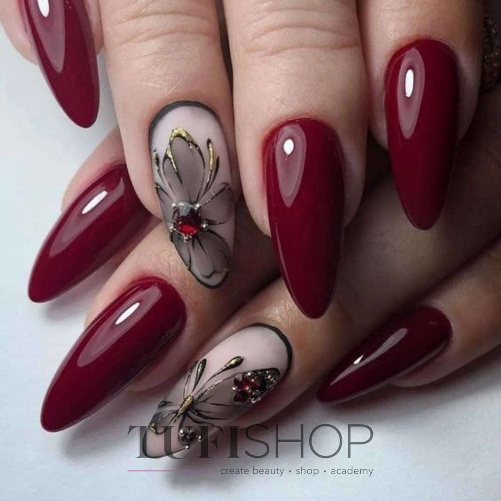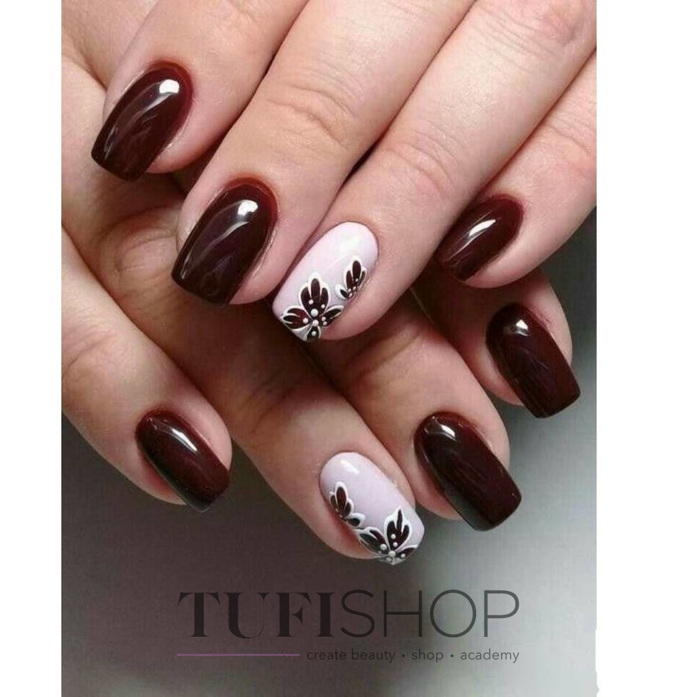Бордовый маникюр с цветами: 100 фото красивых идей дизайна