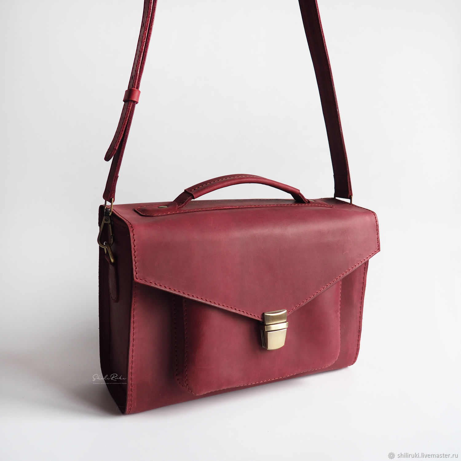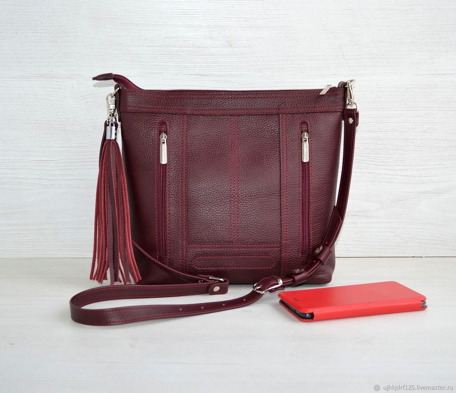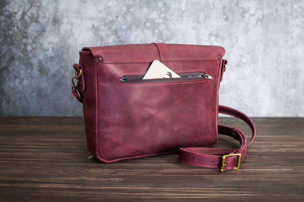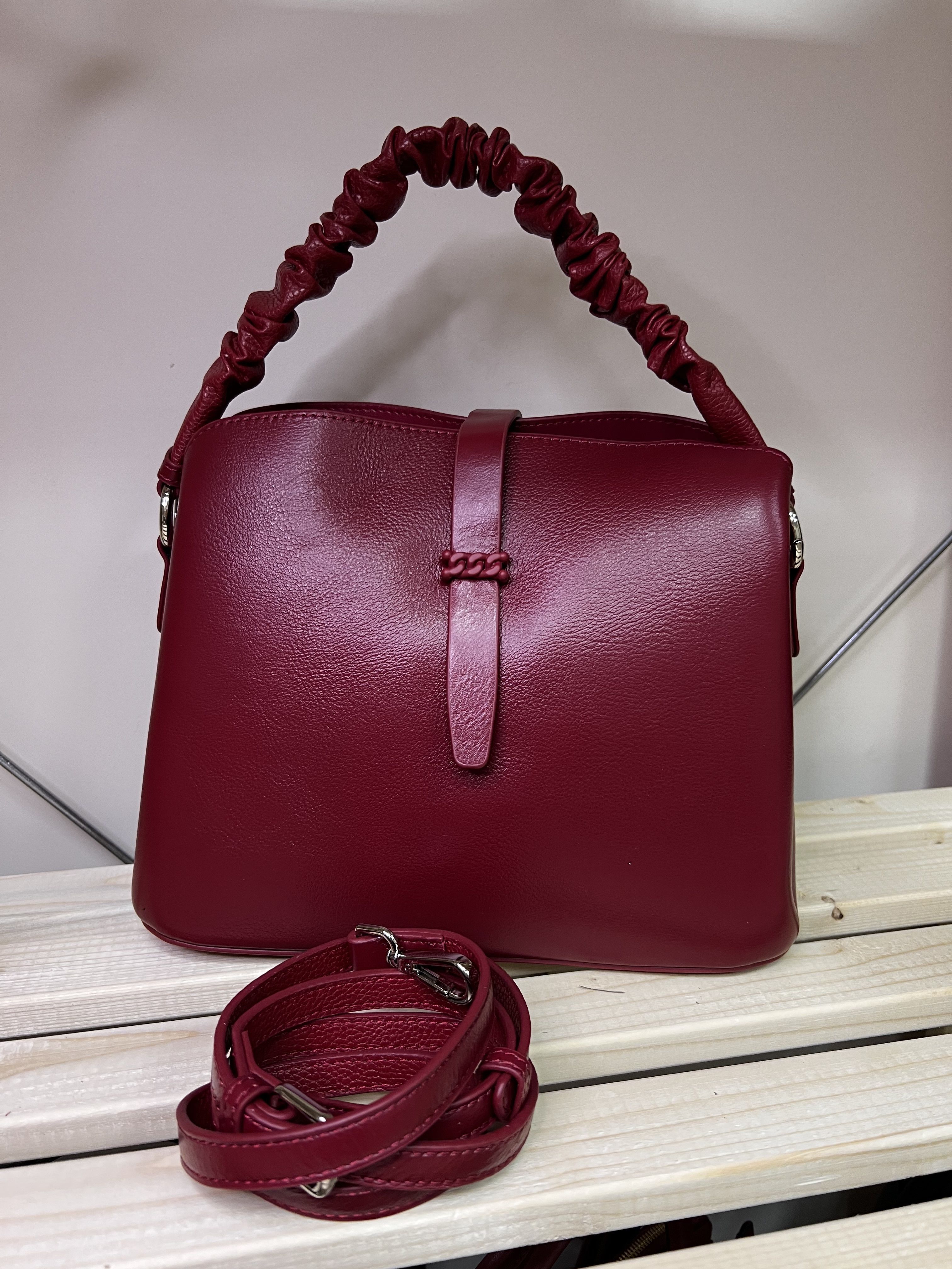 Бордовый сумка кожаная