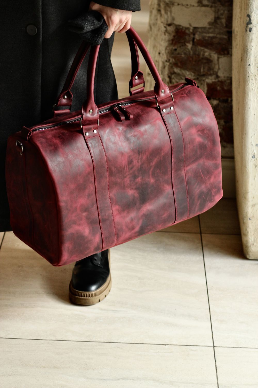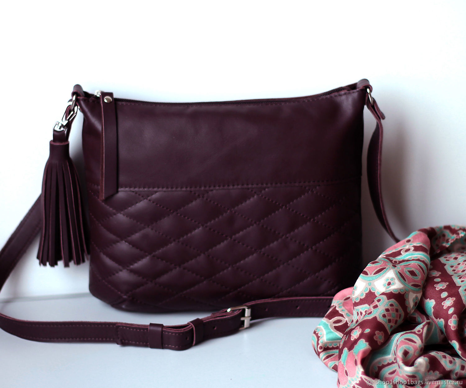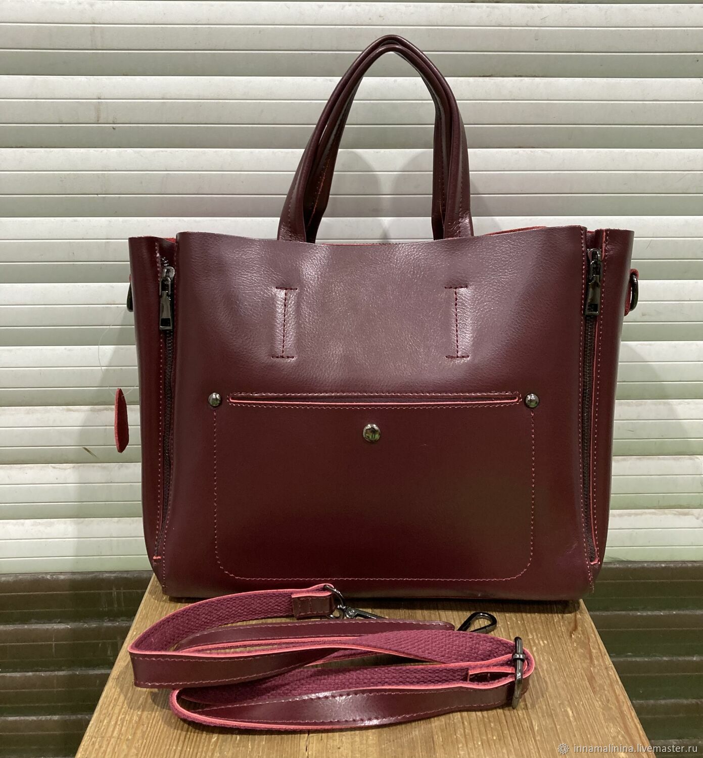 Бордовый сумка кожаная