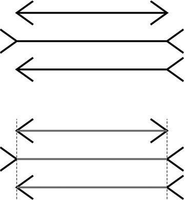 Когда-то науку о мозге очень сильно продвинуло наблюдение за иллюзиями, то есть ошибками восприятия. Вот, например, знаменитая оптическая иллюзия Мюллера-Лайера: если человек видит на бумаге две линии одинаковой длины, но одна кажется ему длиннее, а другая короче из-за пририсованных на концах стрелочек, – это не он сумасшедший, это механизмы зрения заставляют мозг ошибаться (рис. 1). И если мы будем присматриваться к примерам, на которых он ошибается, мы что-нибудь новое про механизмы зрения поймем. Наше знание про слепое пятно на сетчатке и саккады, быстрые движения глаз, в результате которых цельная картинка собирается из обрывков, – прямой результат изучения таких иллюзий.
