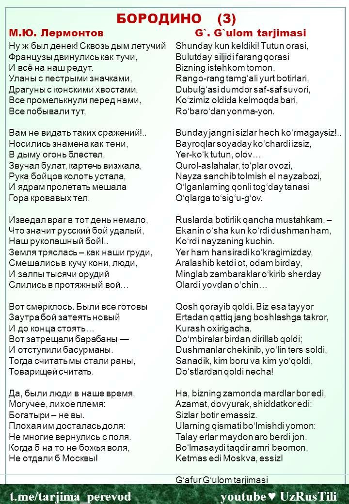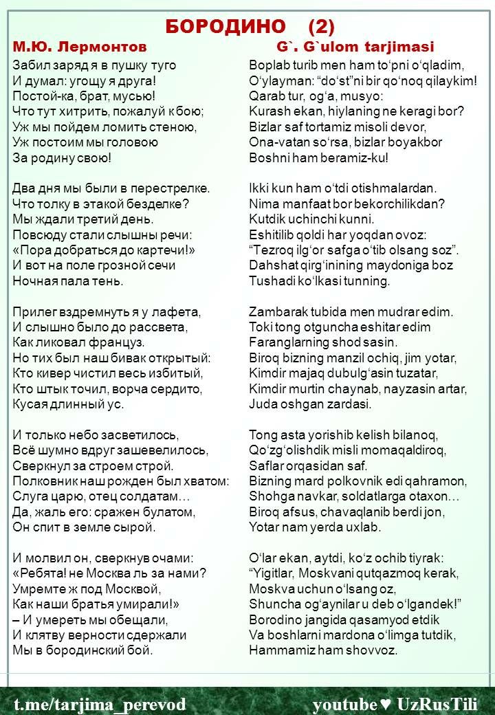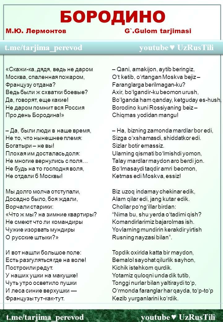Перевод 🇺🇿🇺🇸🇷🇺 Таржима саньати