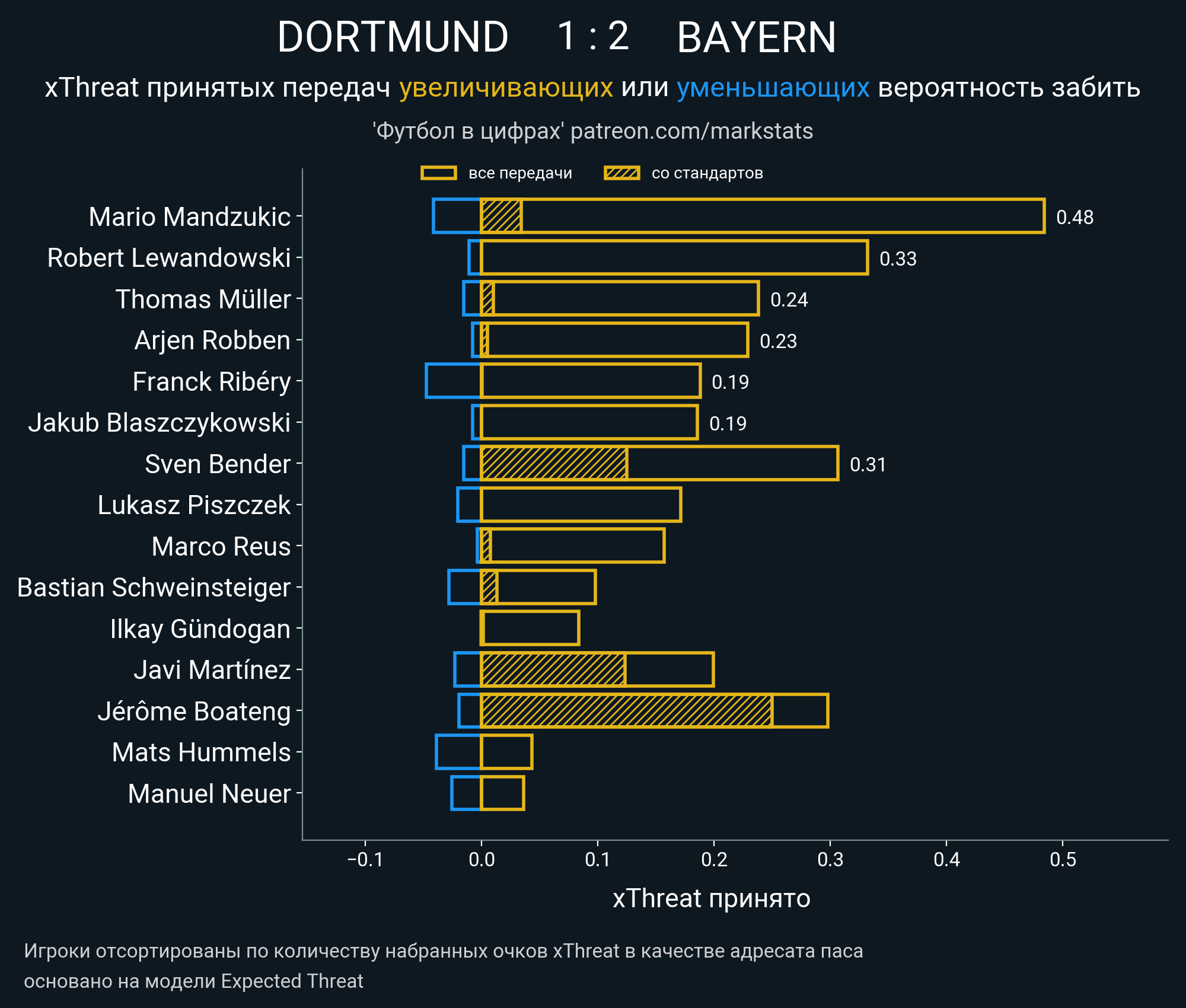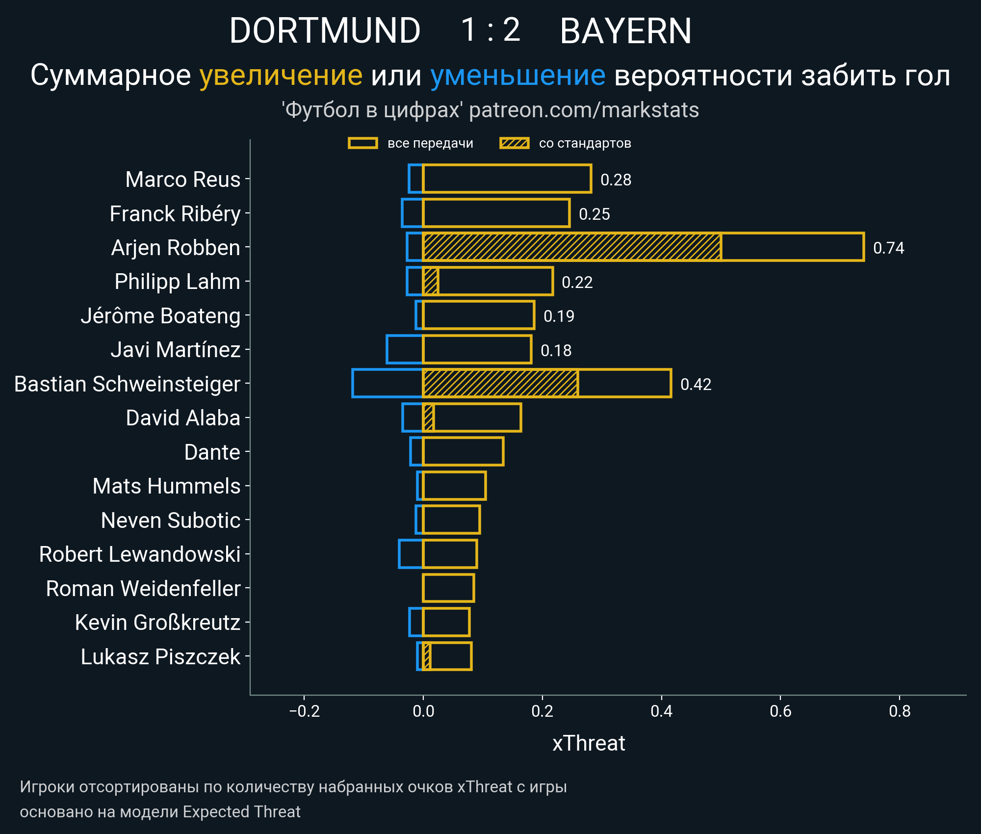 Очки xThreat с игры: