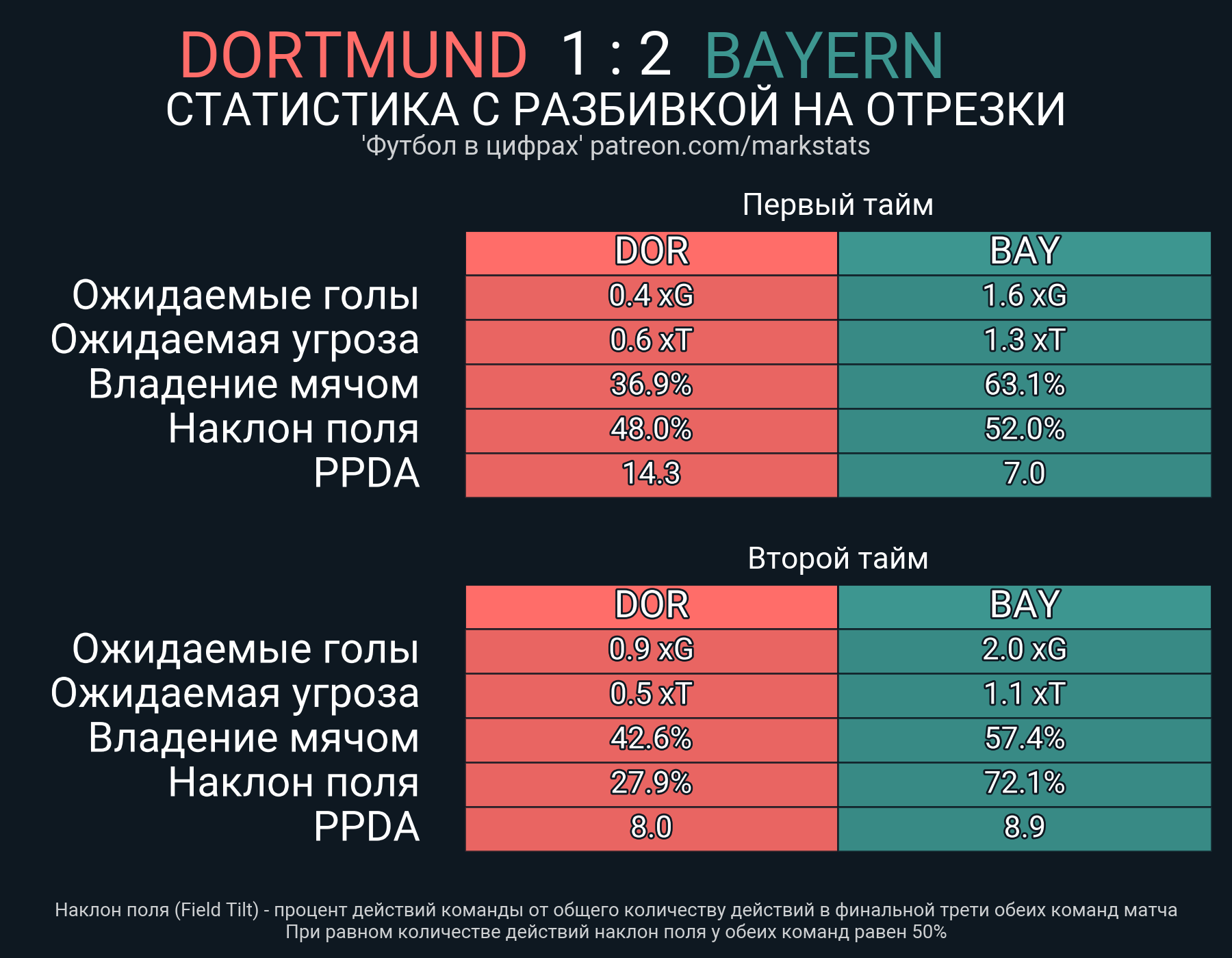 Футбол в цифрахСтатистика матча Borussia Dortmund - Bayern