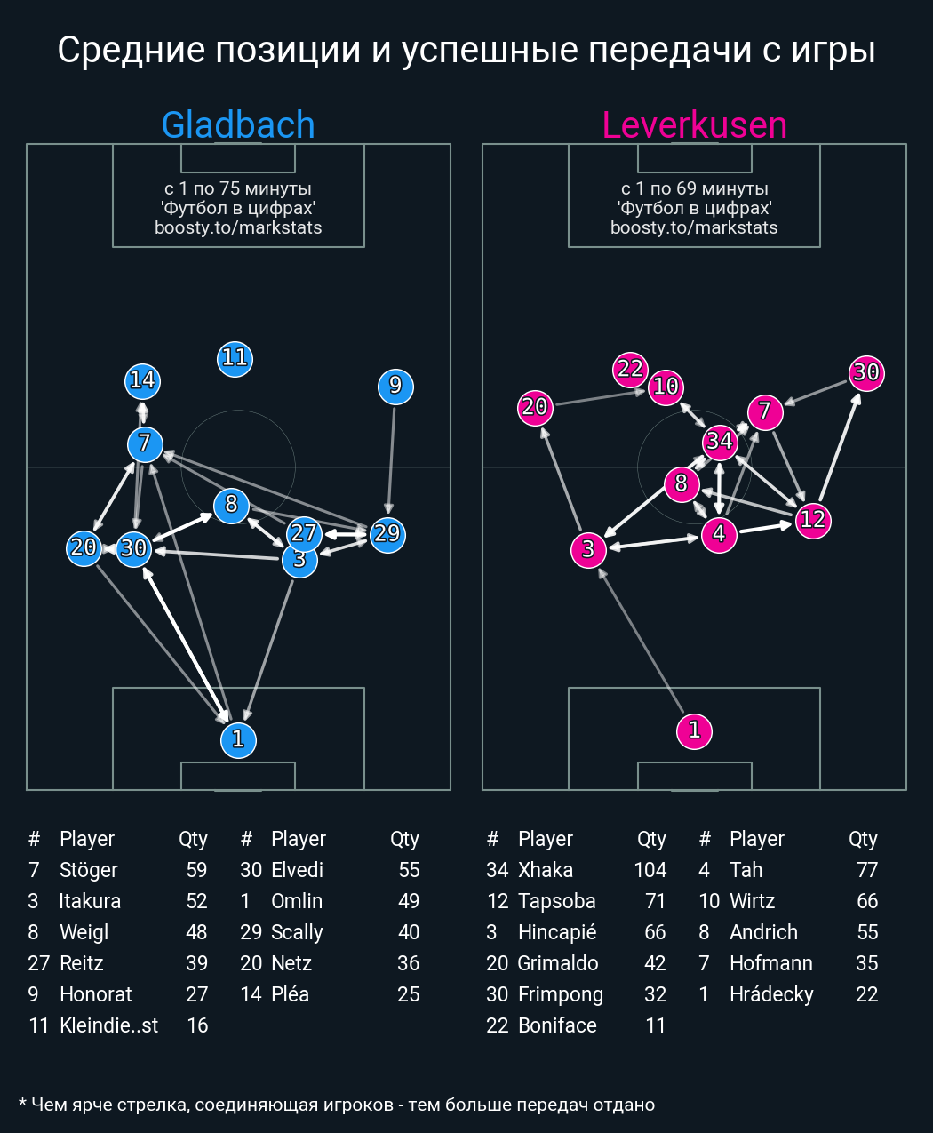 48 успешных передач из 67 попыток (3 под удар, 8 с продвижением, 17 на трети соперника)