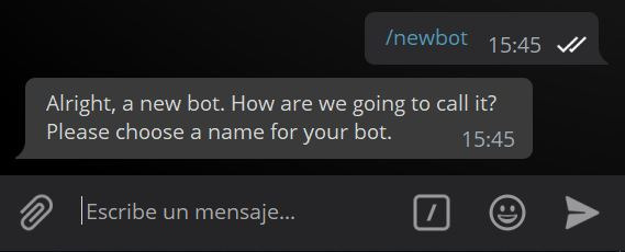 En caso contrario, es porque el alias del bot ya ha sido cogido con anterioridad y deberás escoger otro, no hace falta que hagas nada... solo escribir el siguiente nombre acabado en bot hasta que te salga algo como la imagen de arriba