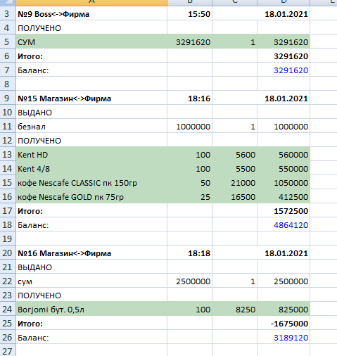 Все данные выводятся в формате Excel.