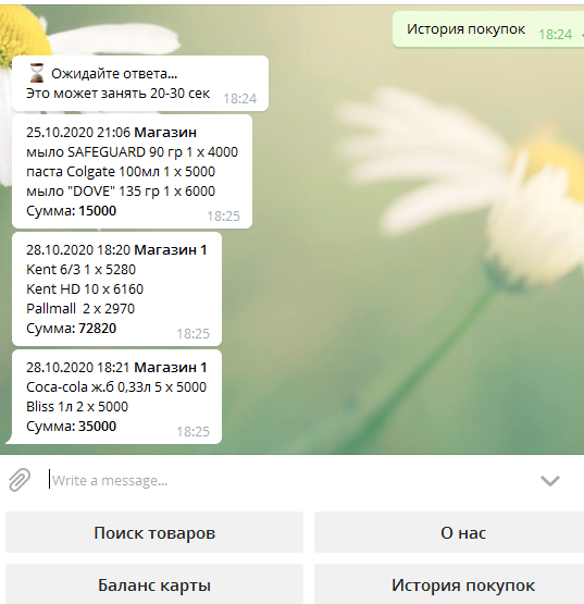Business ExplorerДанный бот разработан для покупателей, имеющих дисконтные карты вашей торговой точки. С помощью бота, покупатели могут узнать баланс дисконтной (накопительной) карты, посмотреть историю покупок, а так же воспользовавшись поиском товаров узнать цены на товары в наличии. Данный бот является персонализированным для каждой организации. Для того, чтобы начать пользоваться ботом, необходимо самостоятельно (если не знаете как- мы поможем) создать бота и дать ему название. Этот бот будет синхронизироваться только с Вашей базой Business.