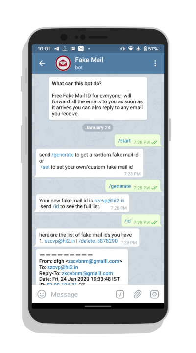 Бот в телеграмме почта