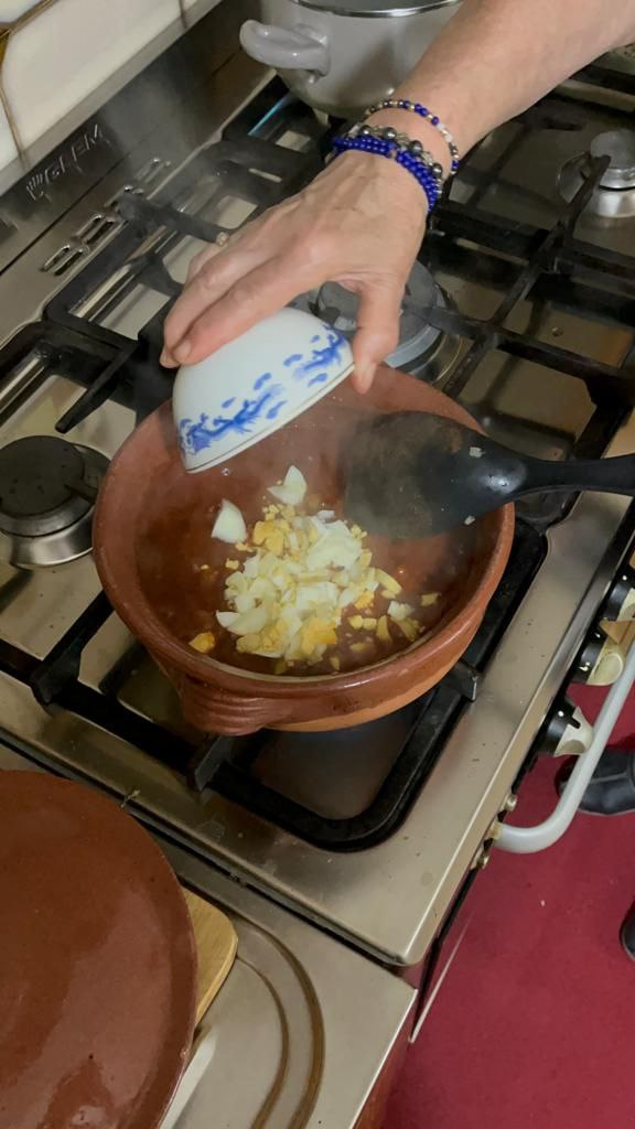Aggiungete la passata di pomodoro, un po' di acqua e lasciate cuocere per qualche minuto. Aggiungete la salsiccia e l'uovo bollito tagliati a pezzetti.