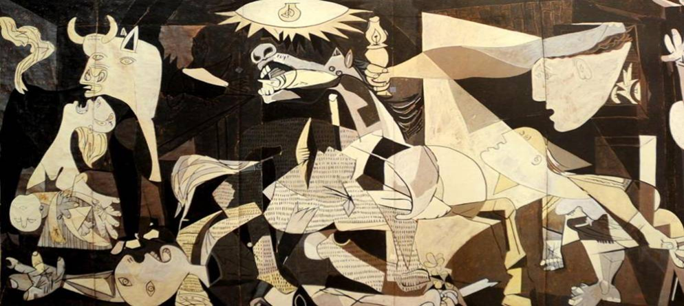 Abbiamo avuto persino coloro i quali osannavano i suoni della guerra, quasi come fossero poesia[3] e bellezza, dimenticando però che dietro quei suoni metallici di distruzione c’è la violenza inaudita su esseri umani dilaniati dalle bombe. Di segno completamente opposto è invece la raffigurazione pittorica che Picasso fa di “Guernica”, nell’opera è presente la devastazione fisica e mentale della guerra.
