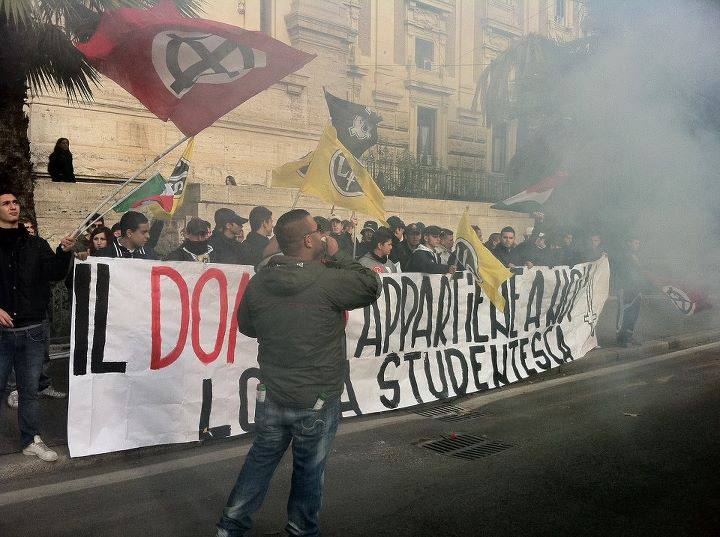 Questo avviene sin dagli anni di piombo, quando si costituirono le prime organizzazioni neofasciste, e di conseguenza le loro sezioni giovanili. Ricordiamo Avanguardia Nazionale Giovanile, parte di Avanguardia Nazionale [5]; tra i movimenti attuali invece, troviamo Lotta Studentesca, organizzazione giovanile del movimento Forza Nuova, che richiama (nella sua simbologia e in altri ambiti) al fascismo [6], o ancora il Blocco Studentesco, organizzazione giovanile di CasaPound, per cui vale lo stesso discorso fatto con Forza Nuova [7].