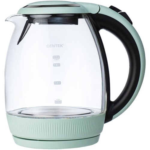 La bouilloire électrique Centek CT-0008 MINT fait bouillir l'eau en quelques minutes. Dispose d'un élément chauffant caché pour chauffer l'eau en toute sécurité. Avantages : - Arrêt automatique ; - Protection contre la mise en marche sans eau ; - Éclairage intérieur ; - Indicateur lumineux de travail ; - Rotation du socle 360°. Conçu pour chauffer et faire bouillir l’eau potable. Matériau du boîtier : verre, plastique ; Puissance : 2 200 W ; Volume : 1,7 litre ; Type d'élément chauffant : fermé ; Couleur : menthe.La bouilloire CENTEK CT-0008 est un appareil élégant et fonctionnel pour préparer des boissons chaudes. Elle a un volume de 1,7 litre et est équipée d'un élément chauffant fermé, qui assure un chauffage rapide et uniforme de l'eau. L'un des principaux avantages de cette bouilloire est qu'elle s'éteint automatiquement après le chauffage. Cela vous permet de ne pas être à proximité de l'appareil, mais de faire autre chose. De plus, la protection contre la mise en marche sans eau évite les dommages et rend la bouilloire sûre à utiliser. Il convient également de noter l'indicateur lumineux de fonctionnement et la rotation à 360° de la base, qui garantissent une utilisation facile. Le corps de la bouilloire est en plastique et en verre, ce qui la rend légère et durable. La bouilloire CENTEK CT-0008 possède de nombreuses fonctions et avantages supplémentaires. Par exemple, un filtre de purification d'eau et un compartiment de rangement pour le cordon rendent l'utilisation de l'appareil encore plus pratique. Si vous recherchez une bouilloire de haute qualité et fiable qui vous servira longtemps et vous ravira par sa fonctionnalité, alors CENTEK est ce qu'il vous faut. un excellent choix. Cette bouilloire deviendra un assistant indispensable dans votre cuisine et vous ravira au quotidien !