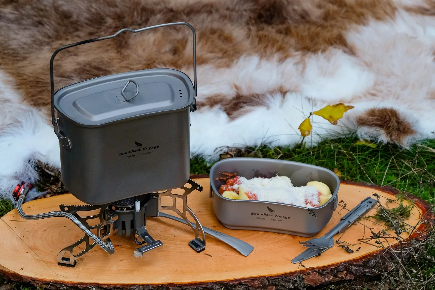 «Boundless Voyage Camping Titanium Pot Set 1500ml & 600ml Military Cup Bowl with Lid Outdoor Travel Cookware Cooking Kit Canteen» по лучшей цене на рынке! Всего за 88$ (8360рублей)