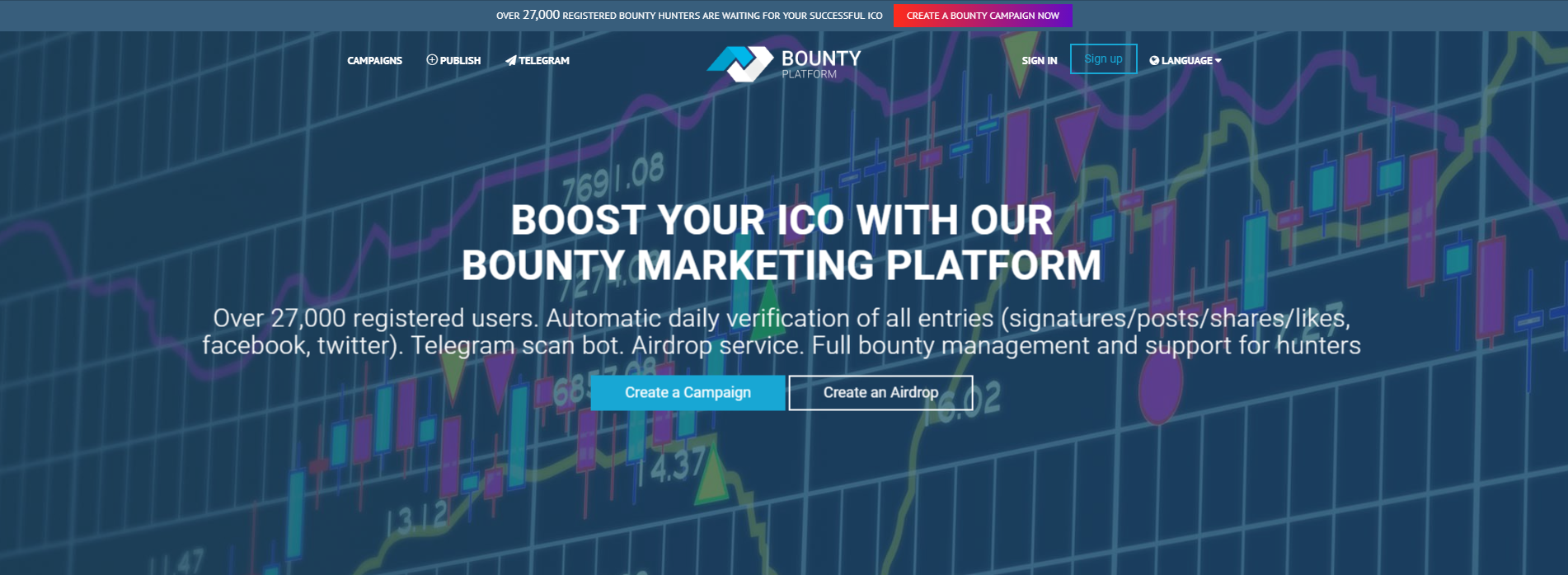 - Up - Add - this tab refers to bounty managers or project developers who want to add their Bounty or AirDrop to the site.