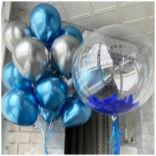 Le bouquet est composé de 15 ballons : Boules chromées 35 cm : - 14 pièces ; Boule Bulles 61 cm avec l'inscription : - 1 pièces ; Agent alourdissant : 2 pièces Vous pouvez ajuster la palette de couleurs dans les commentaires de la commande, ou par téléphone ; avec notre gérant.