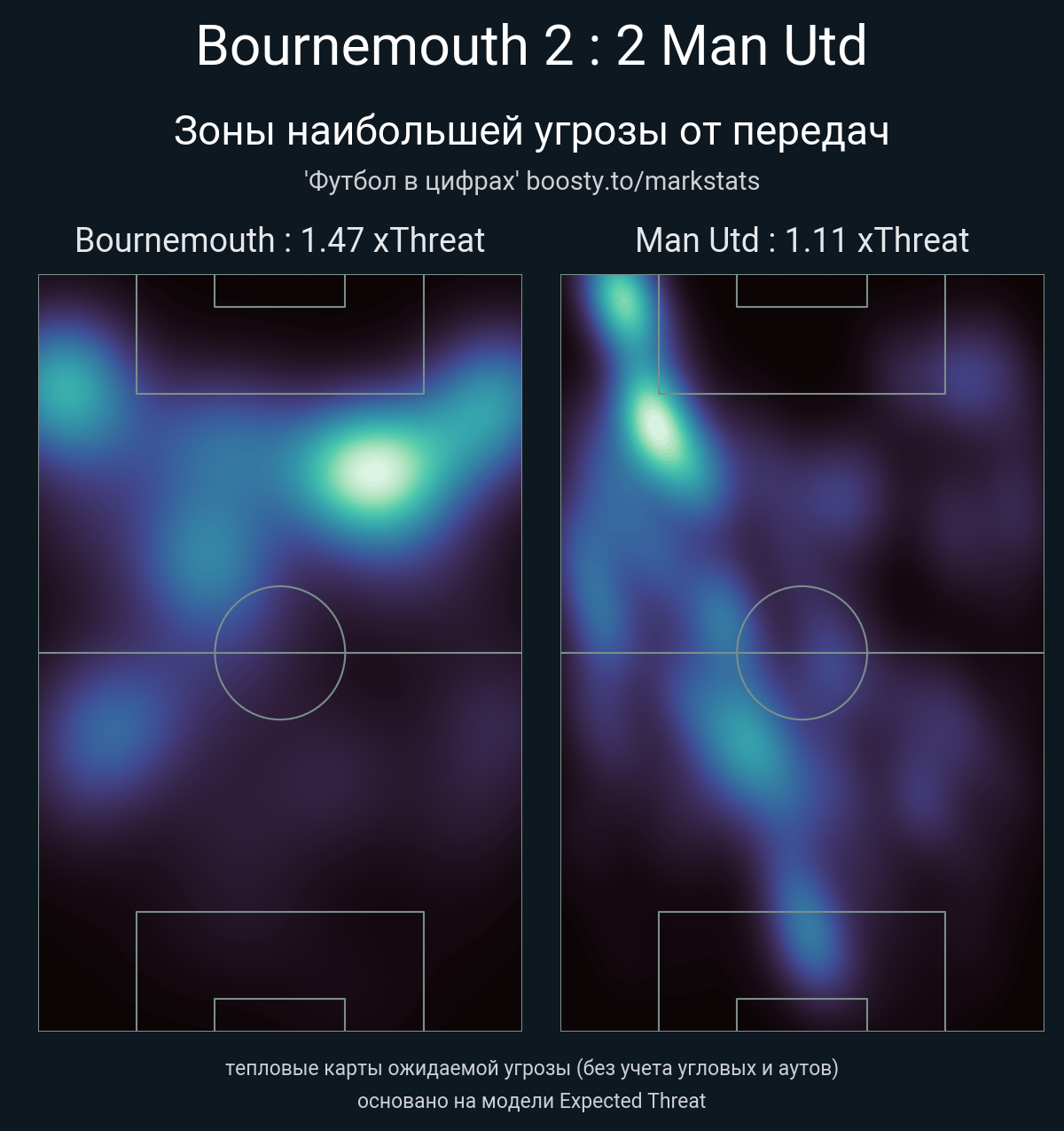xThreat без учета угловых: 1.47 - 1.11