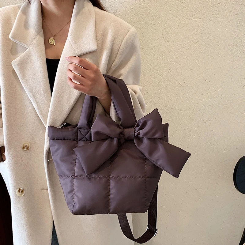 «Bow Nylon Shoulder Side Bags Designer Soft Cotton Padded Woman Handbag Grid High Quality Short Handle Totes Warm 2022 Hit Winter» по лучшей цене на рынке! Всего за 14$ (1330рублей)