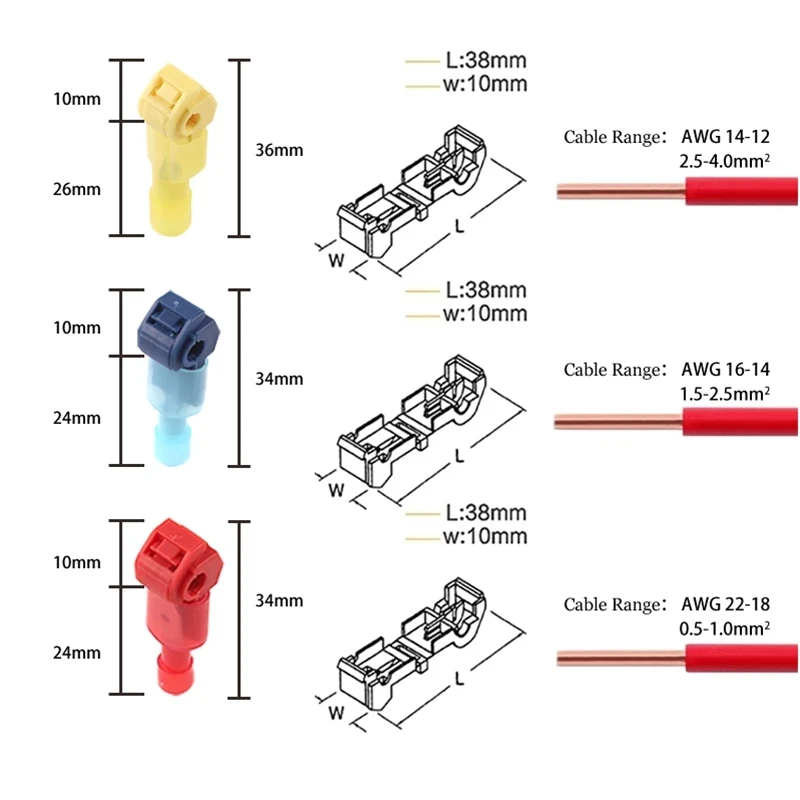 «Boxed Quick Self-Stripping Splice Wire Terminals T-Tap Electrical Wire Connectors Insulated Male Quick Disconnect Spade Terminal» по лучшей цене на рынке! Всего за 11$ (1045рублей)