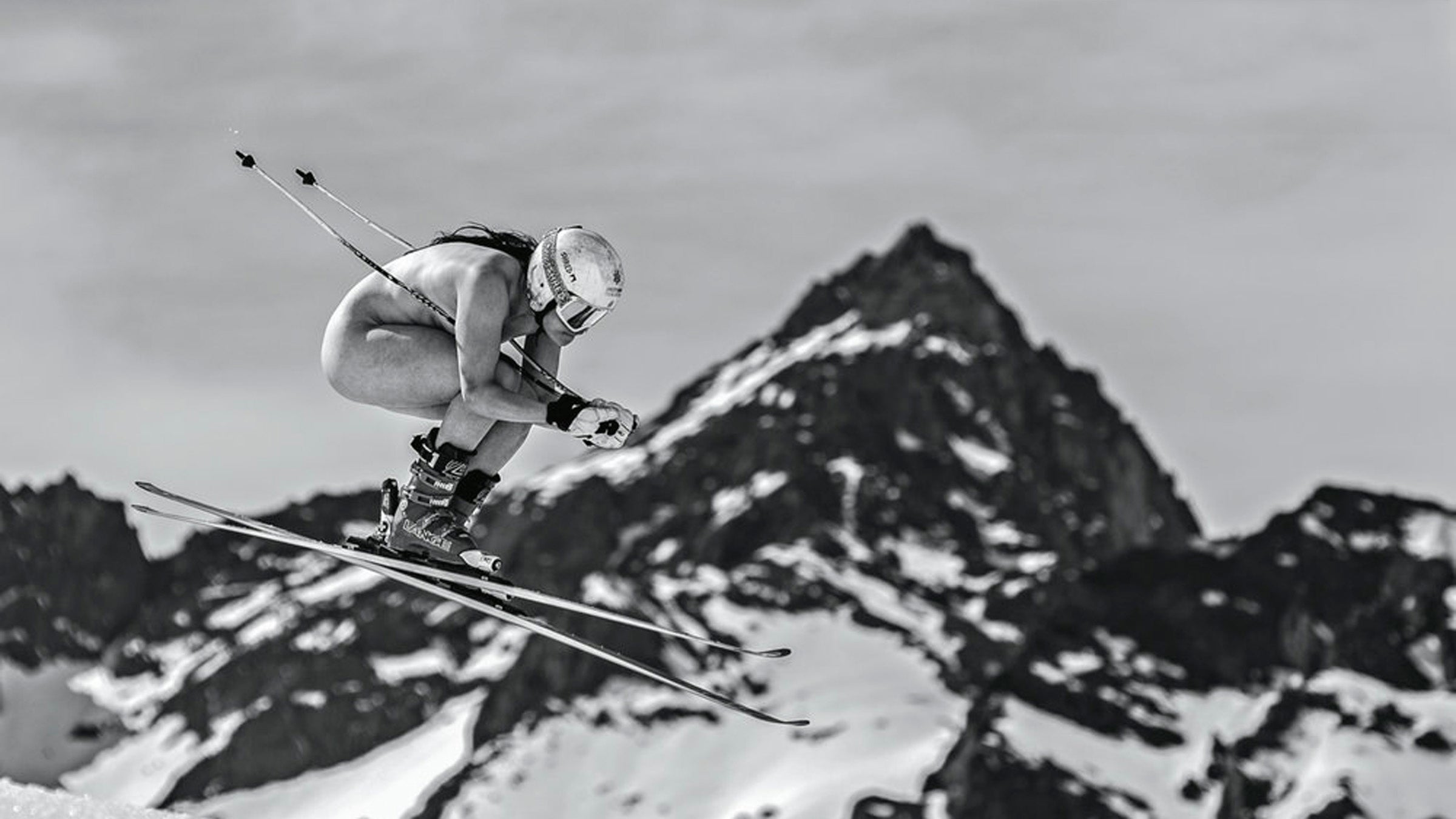 Boys skiing nude