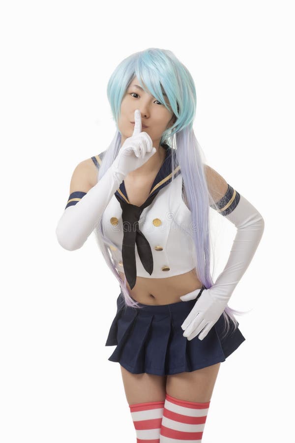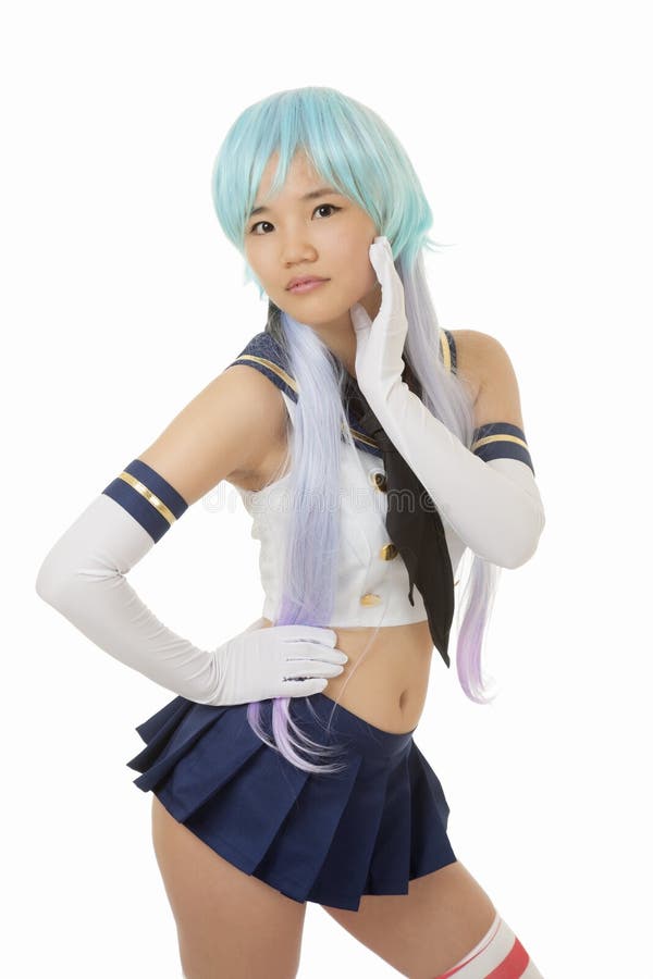 Brünette Asiatin beim Cosplay