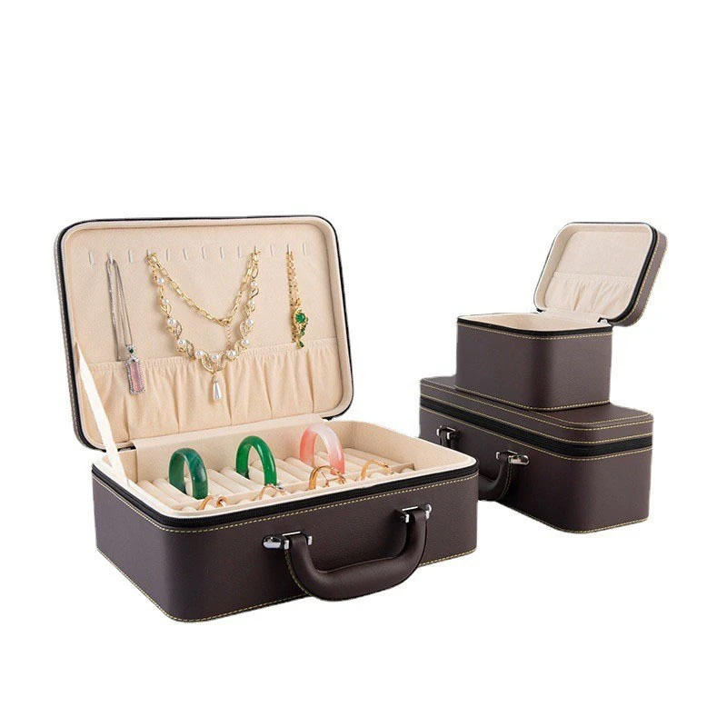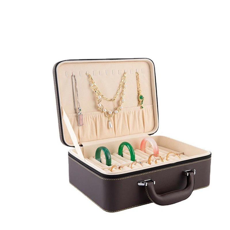 Bracelet Storage Box Large Capacity Jade Jewelry Box Brown Zipper Home Jewelry Collection Box Necklace Ring Earrings Display Box - Купить с бесплатной доставкой
