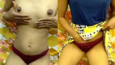 Lewd sweetheart with a precious rack gangbanged on the couch