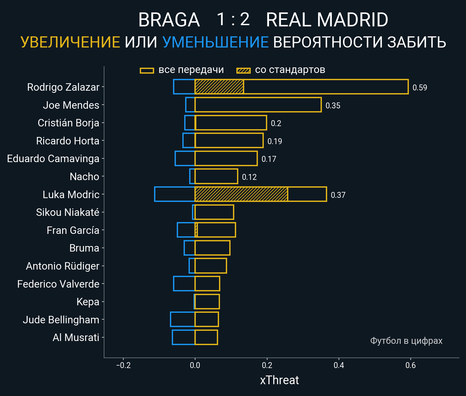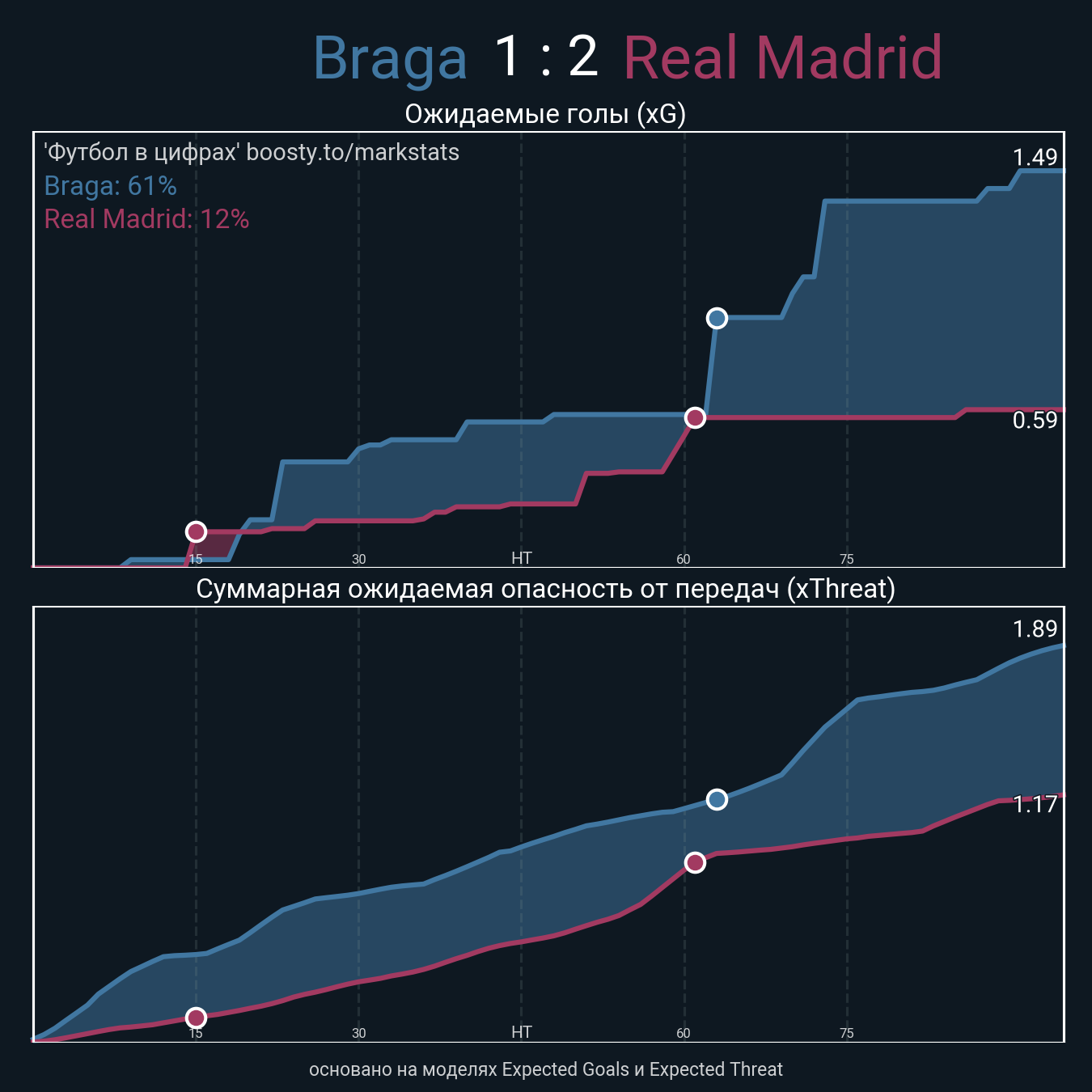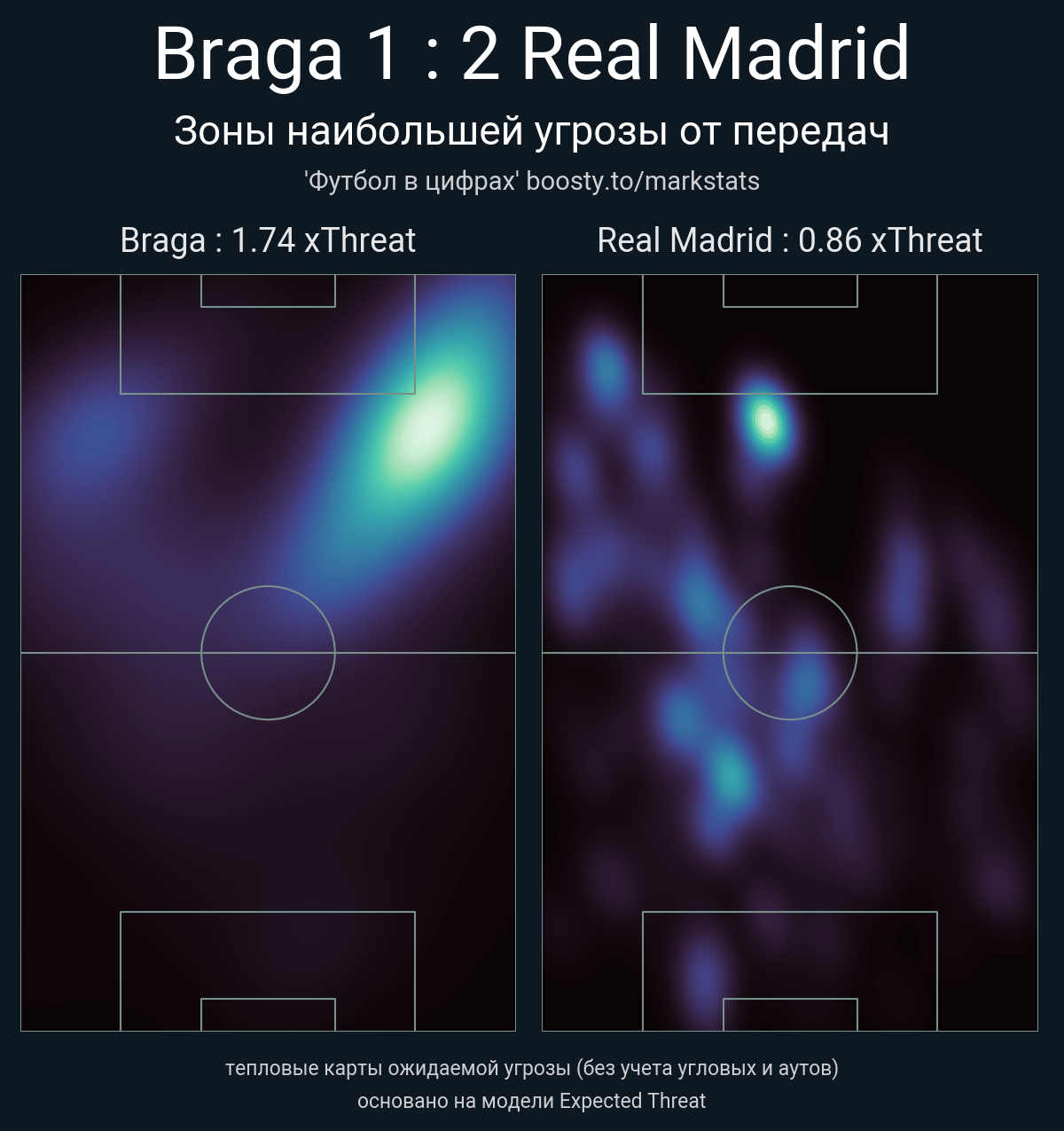 xThreat без учета угловых: 1.74 - 0.86
