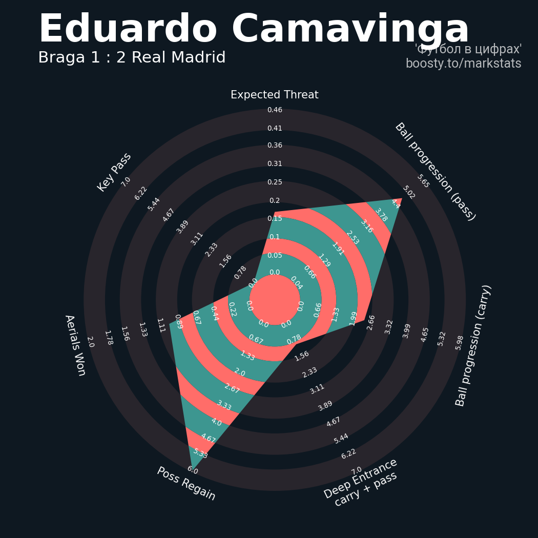 0.46 очка xT (+0.13 со стандартов)