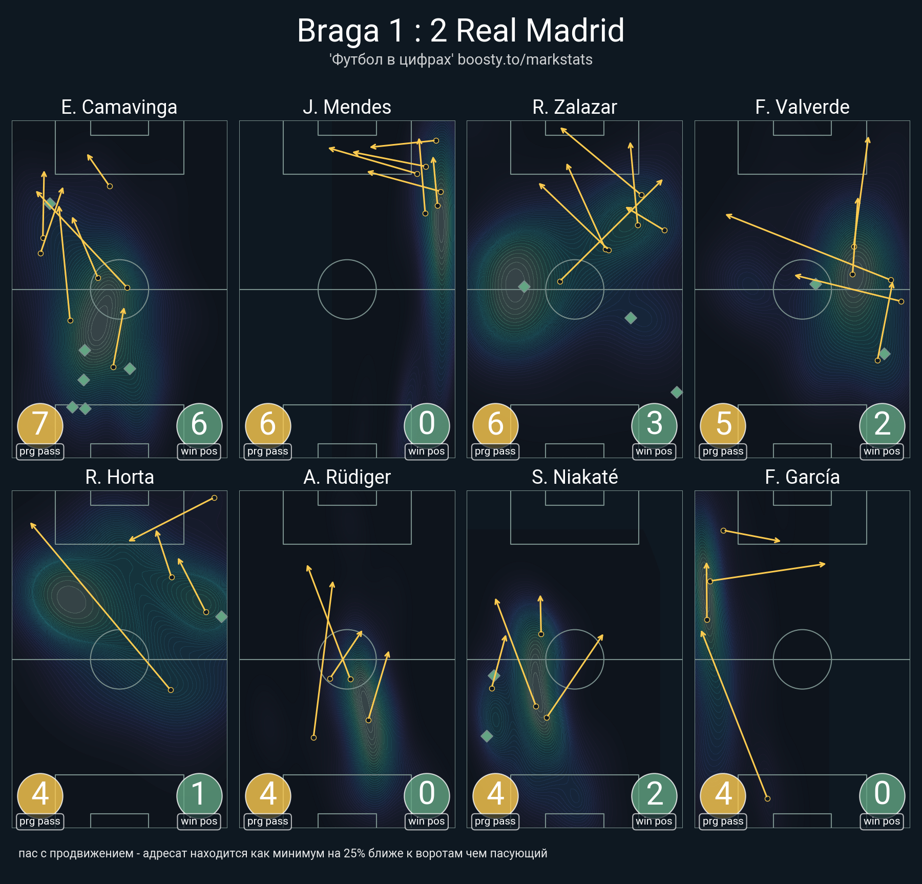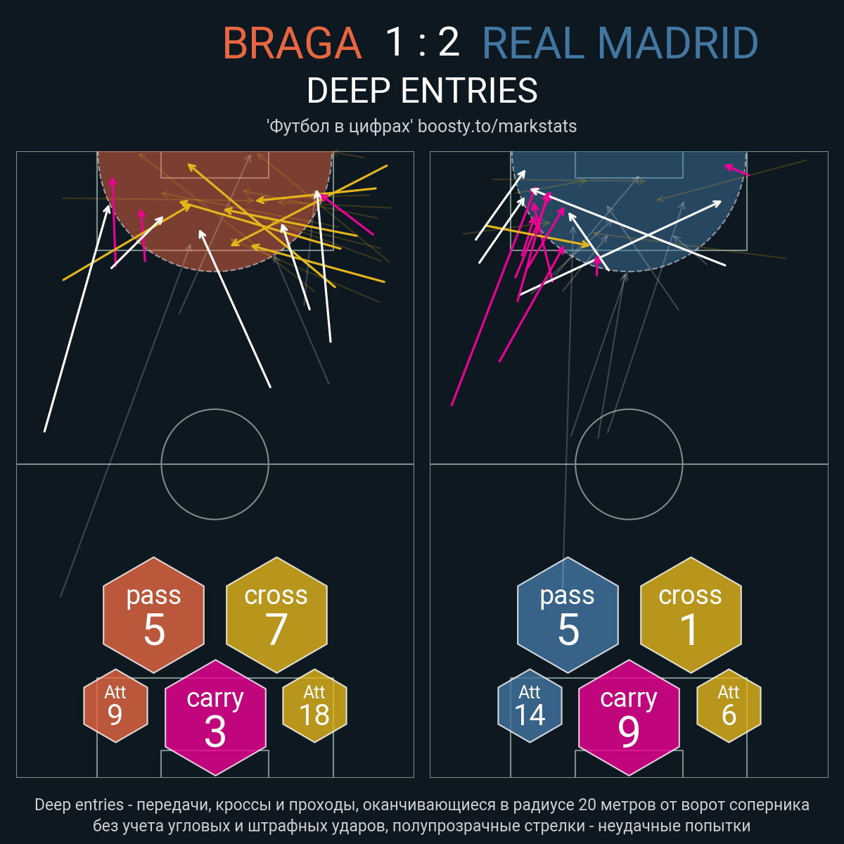 27 успешных передач из 38 попыток (1 под удар, 6 с продвижением, 12 на трети соперника)