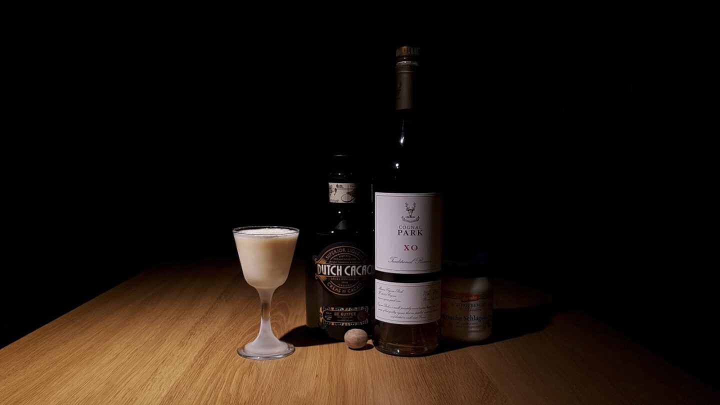 It’s obviously a pimped-out version of the classic—but largely forgotten—Alexander cocktail and mixes brandy instead of gin with creme de cacao and cream. But whoever eighty-sixed the British gin and welcomed the French cognac to the party is, I believe, lost to history.