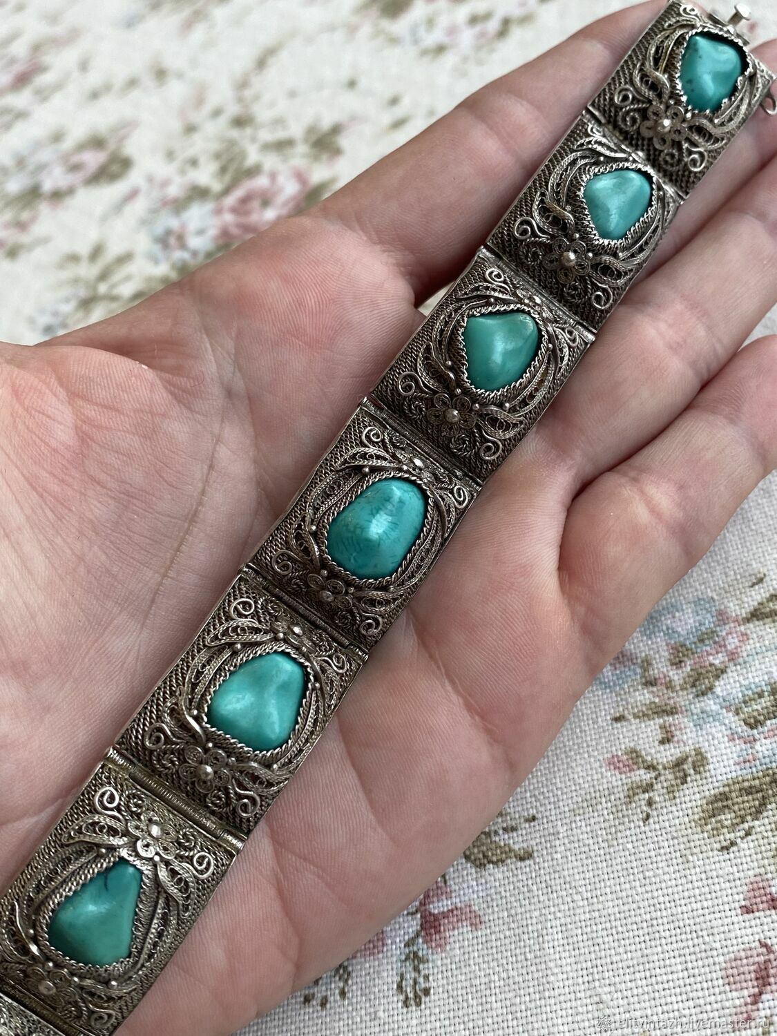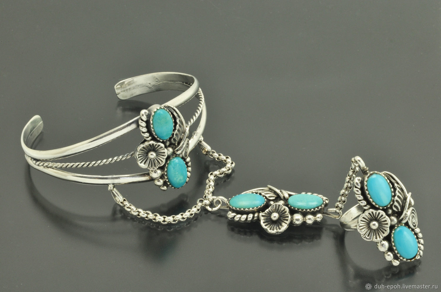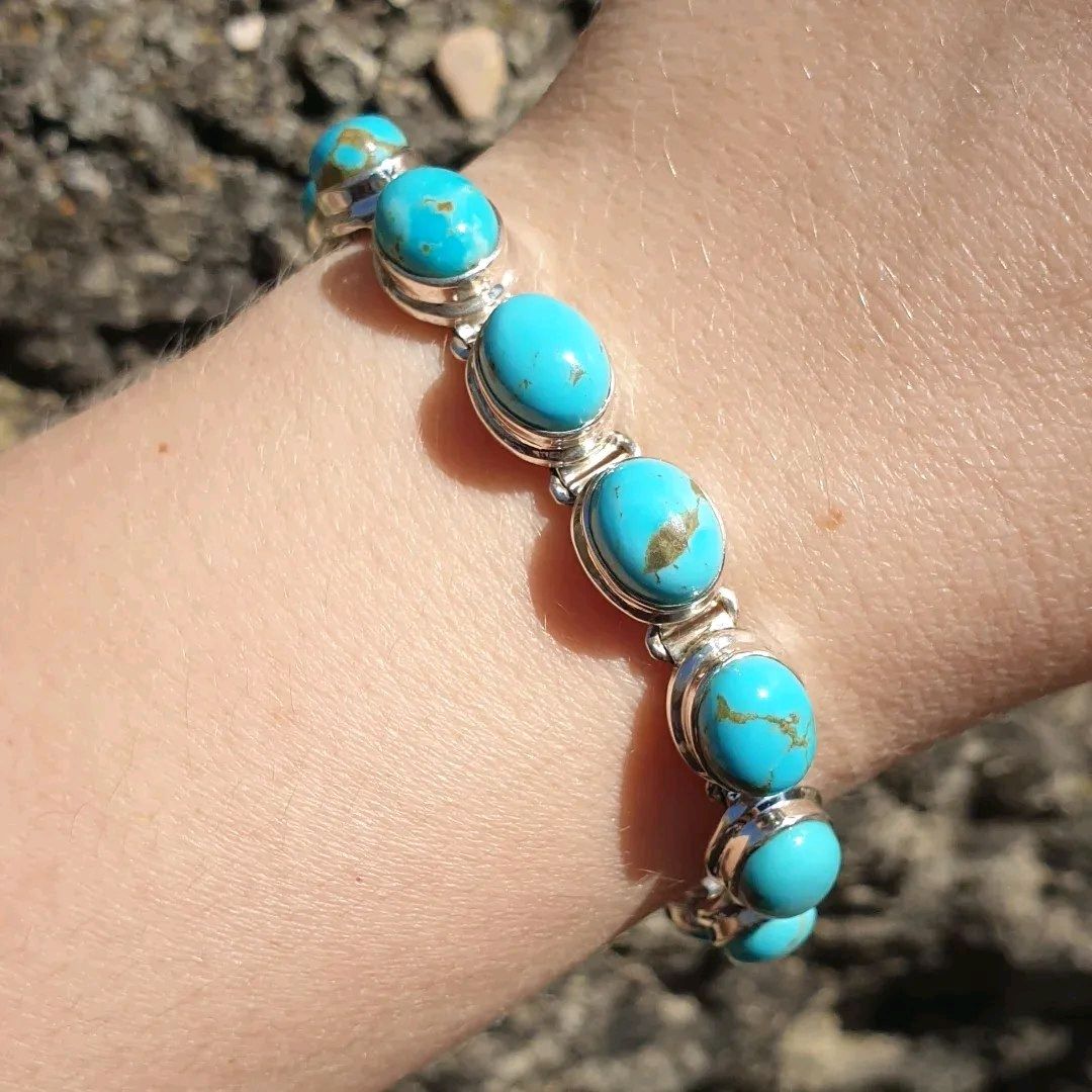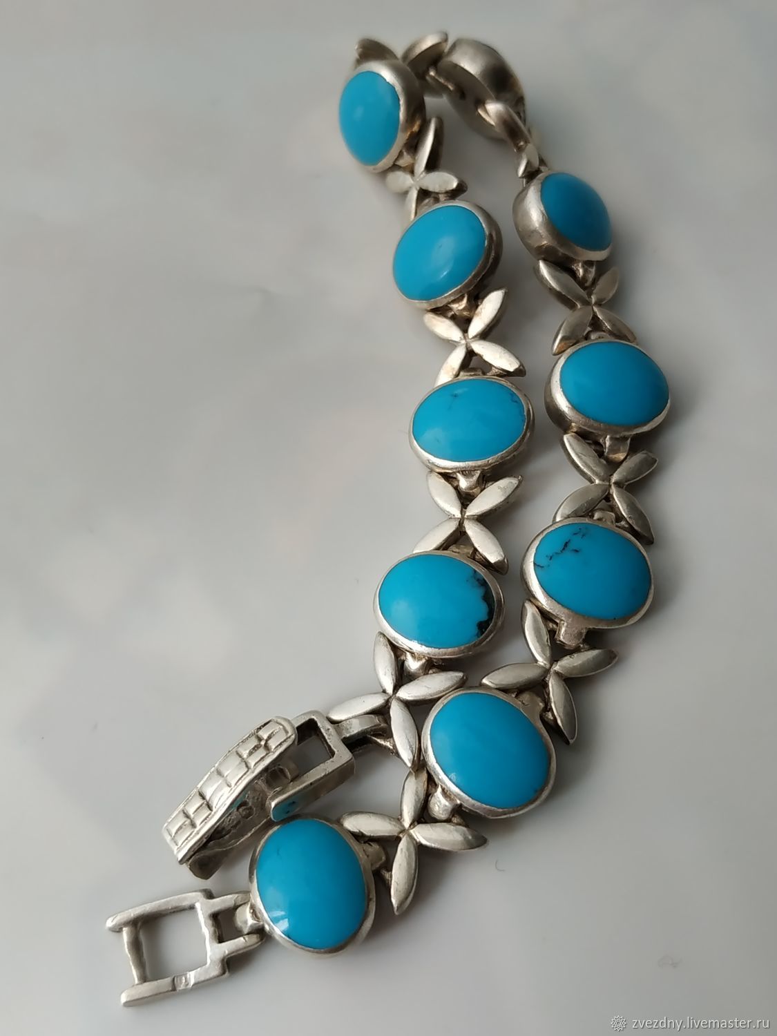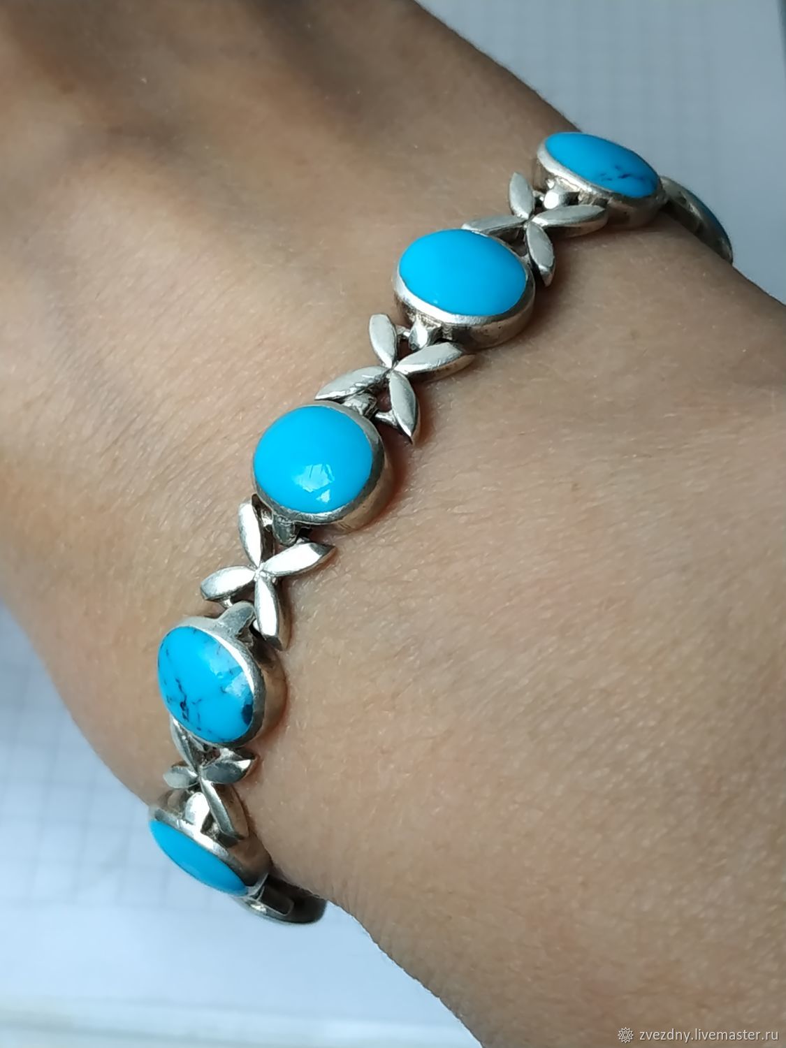 Браслет с бирюзой из серебра 134 фото