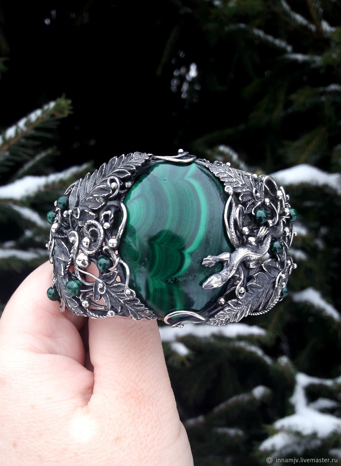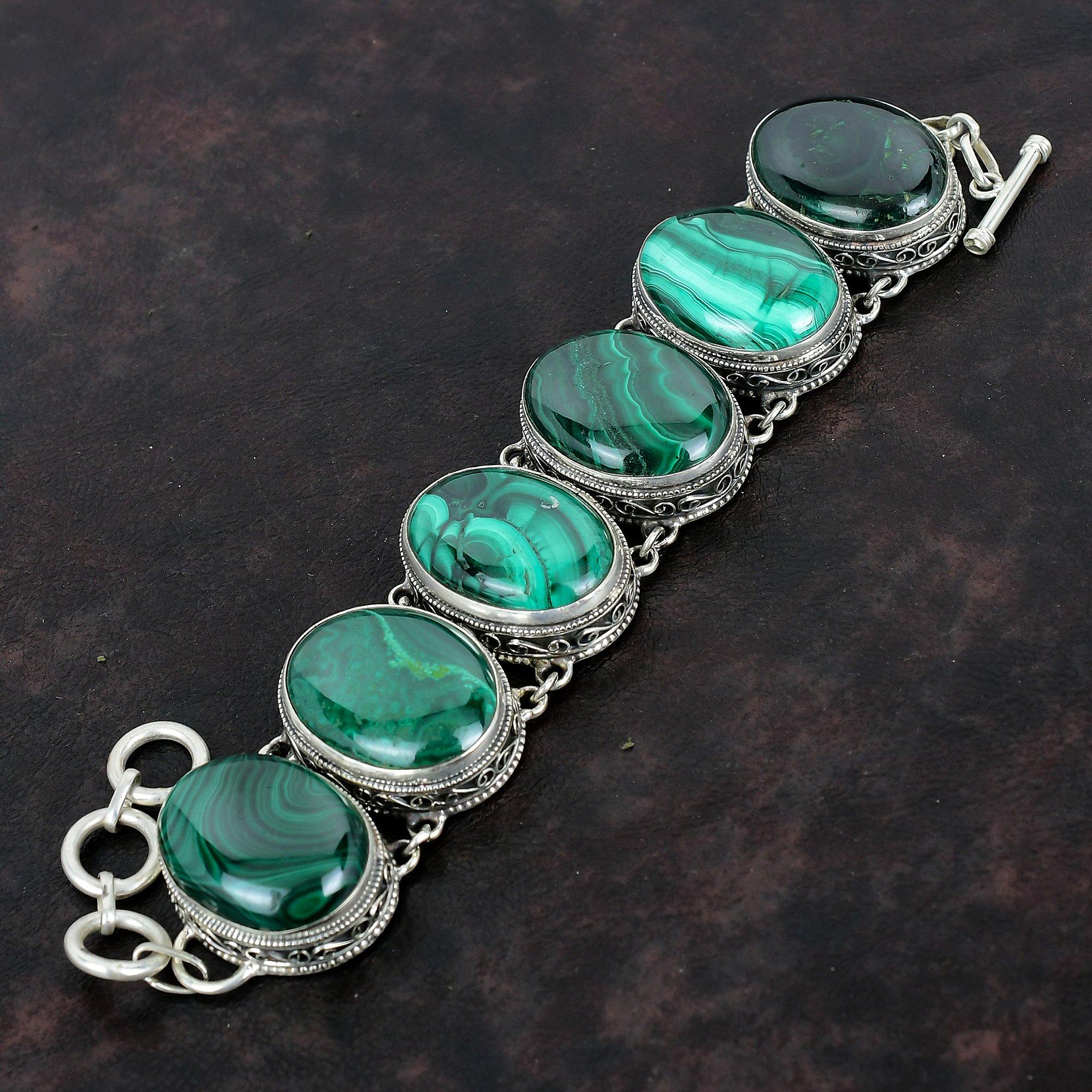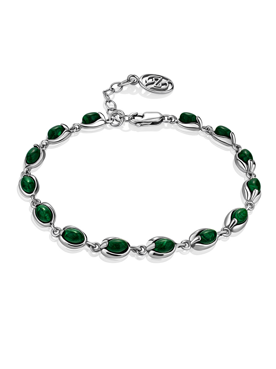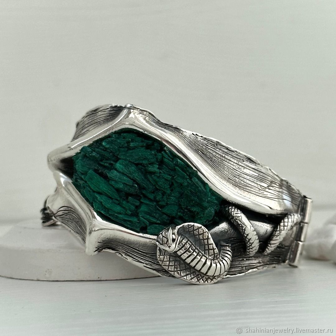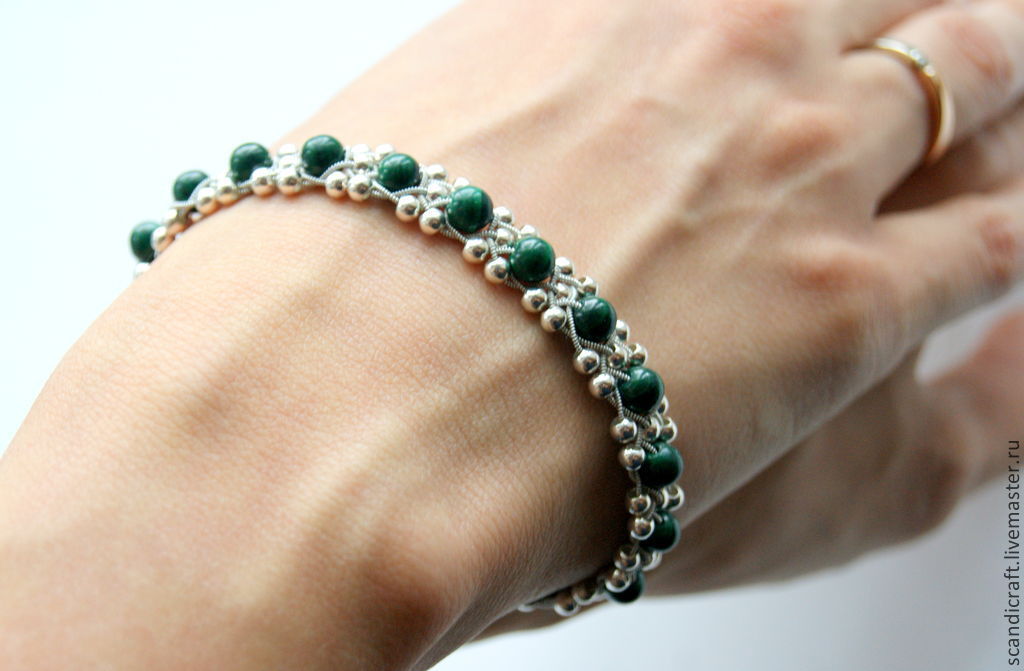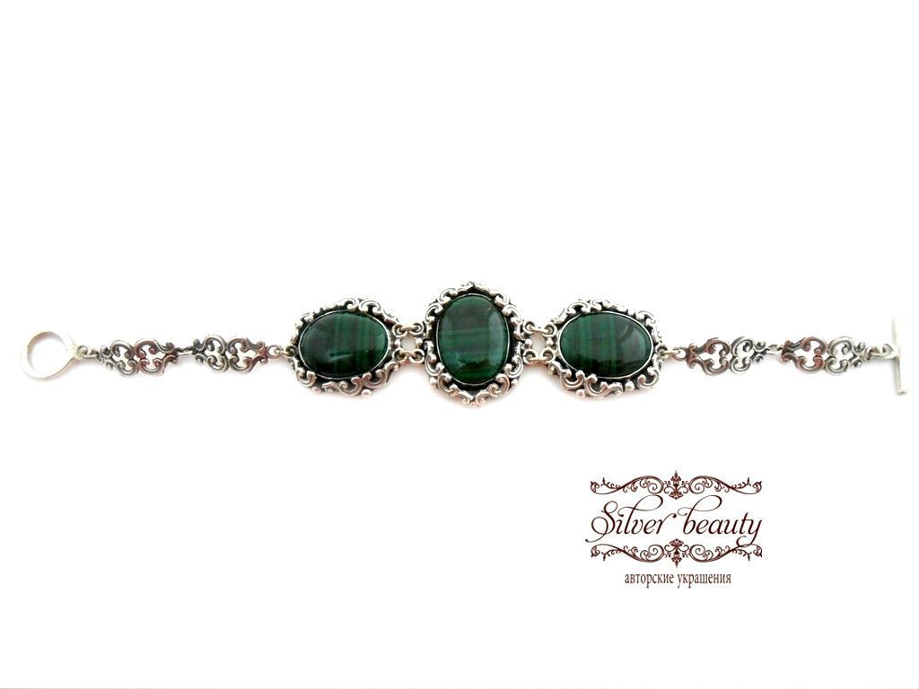 Браслет с малахитом в серебре 121 фотографий