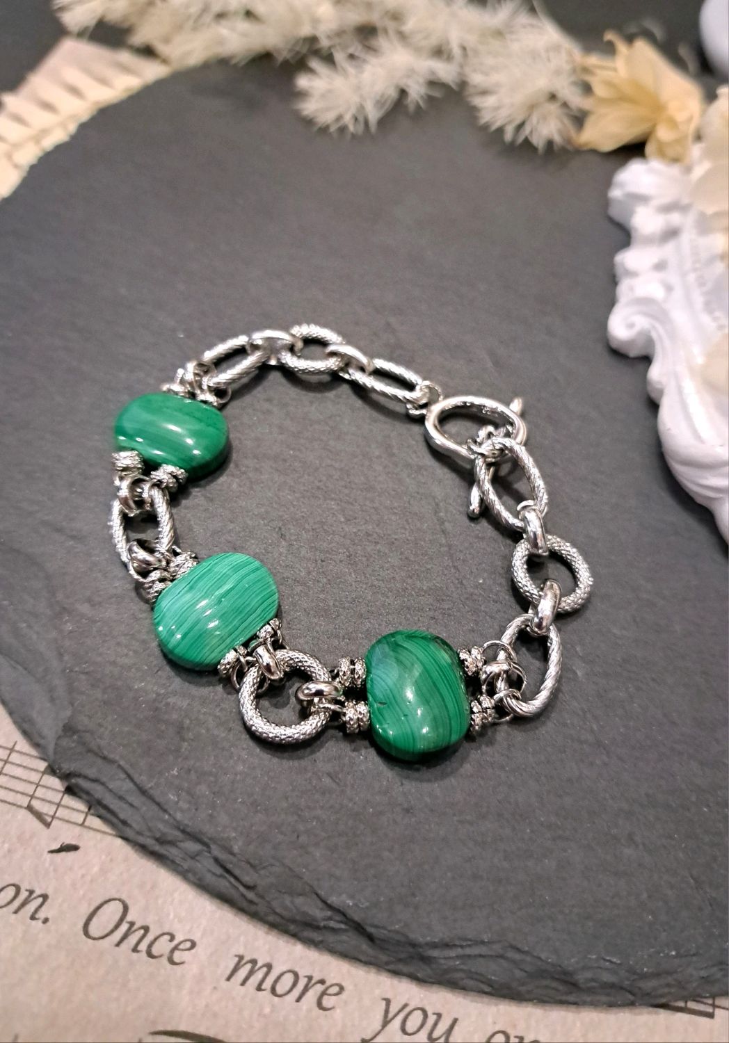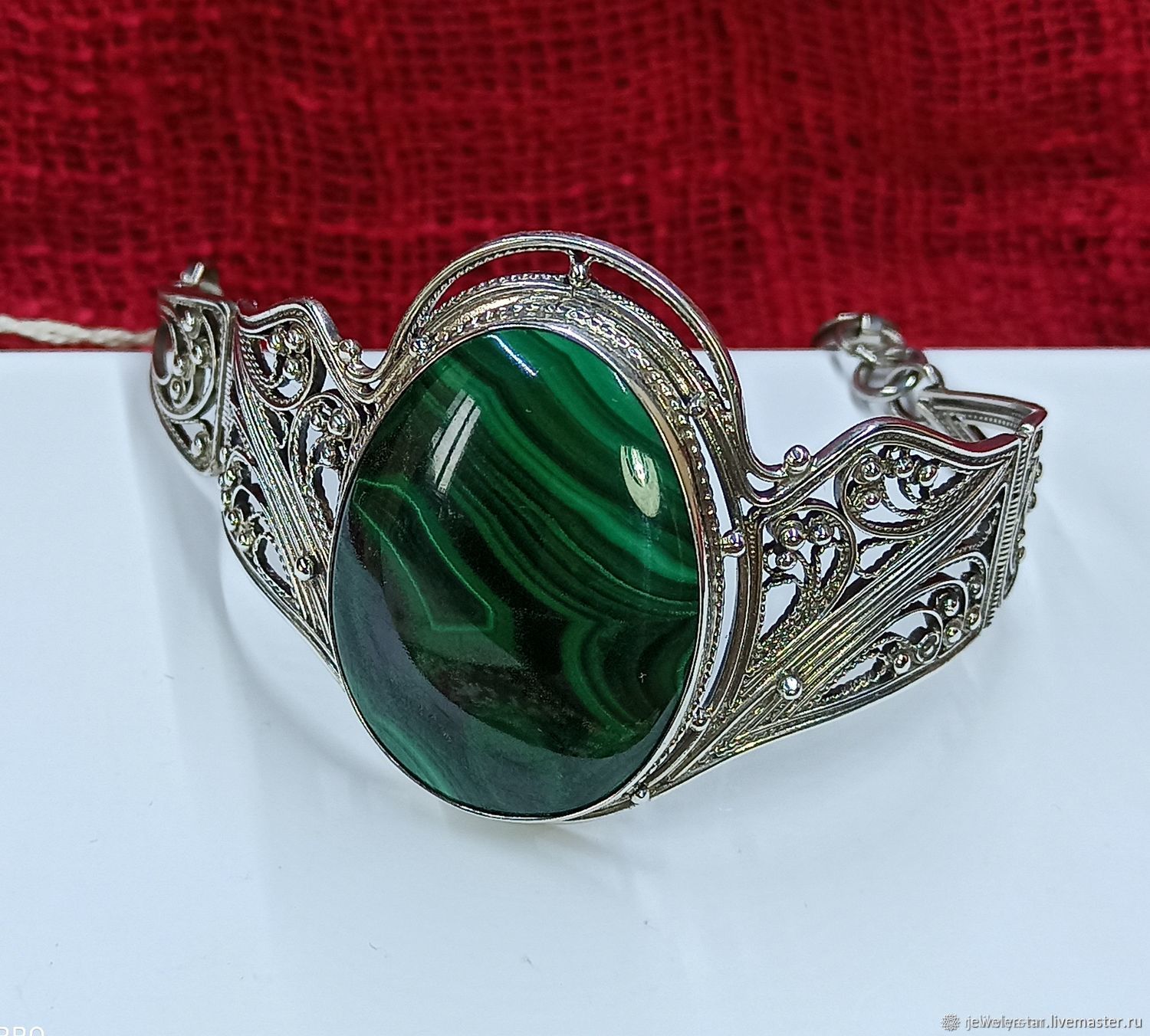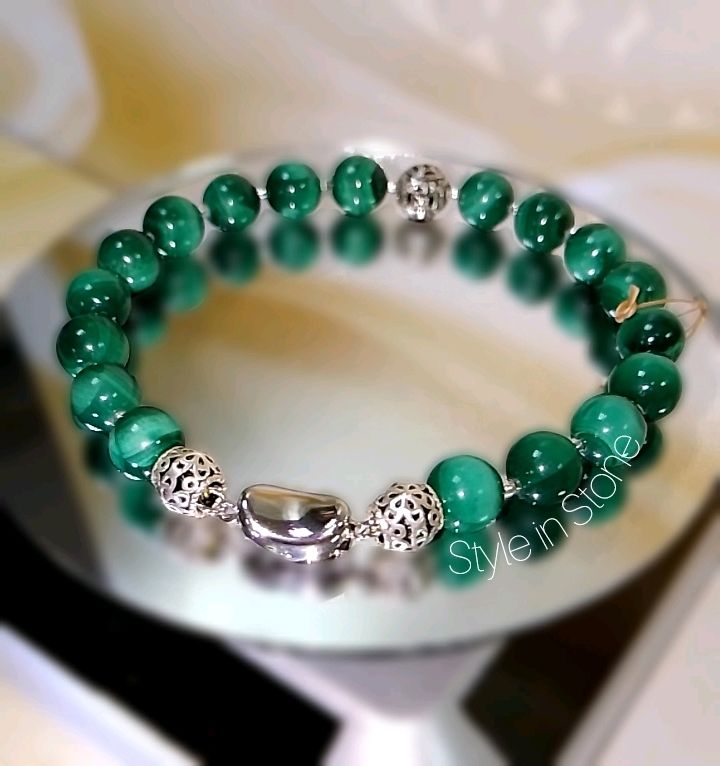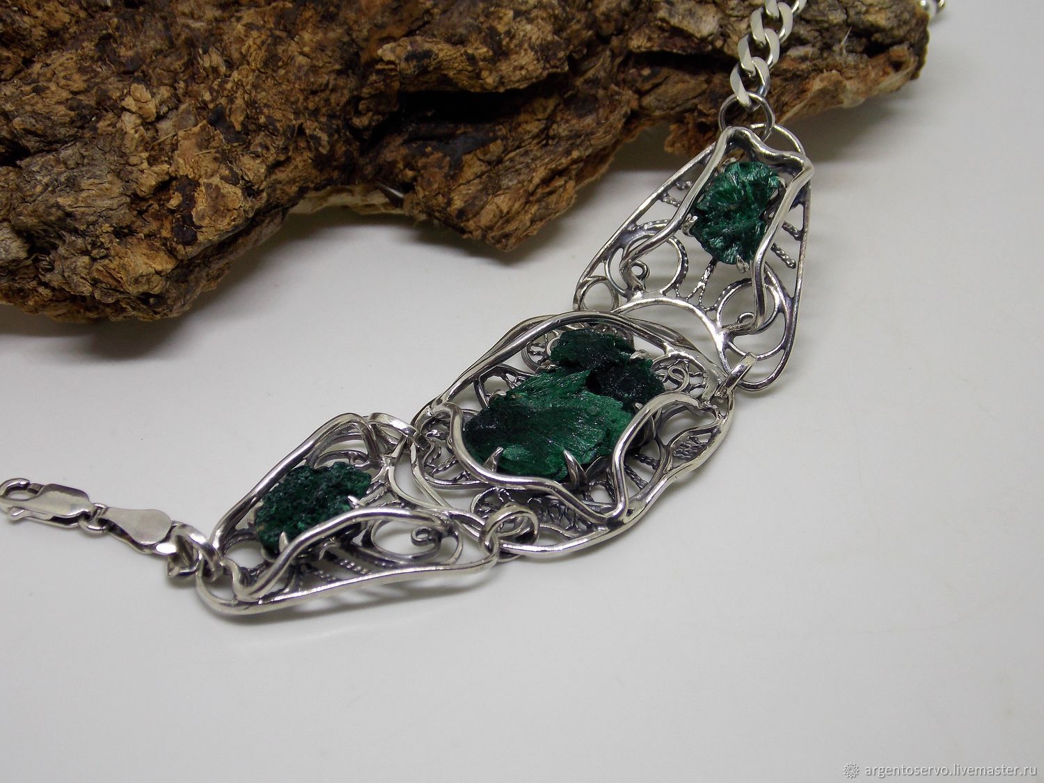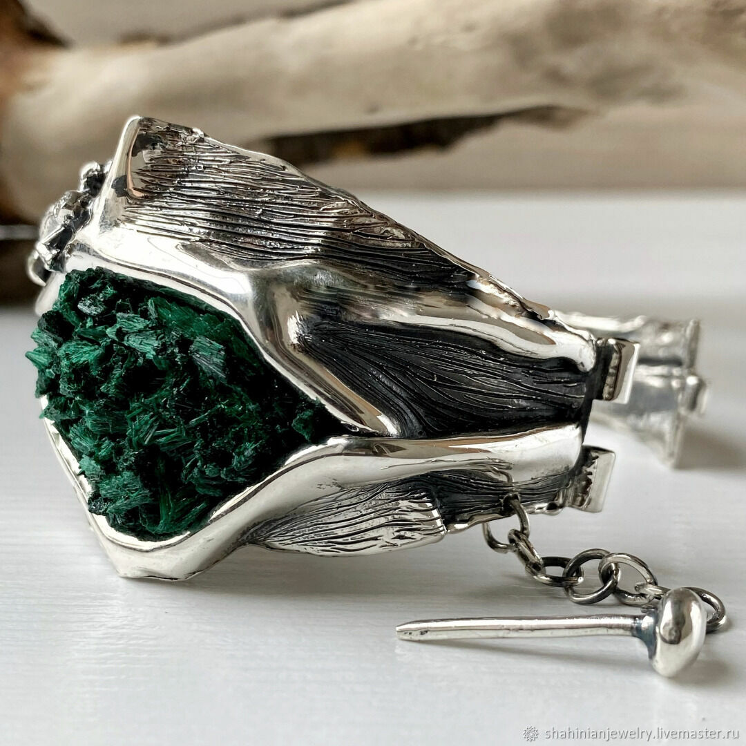 Браслет с малахитом в серебре 121 фотографий