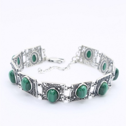 Браслет с малахитом в серебре